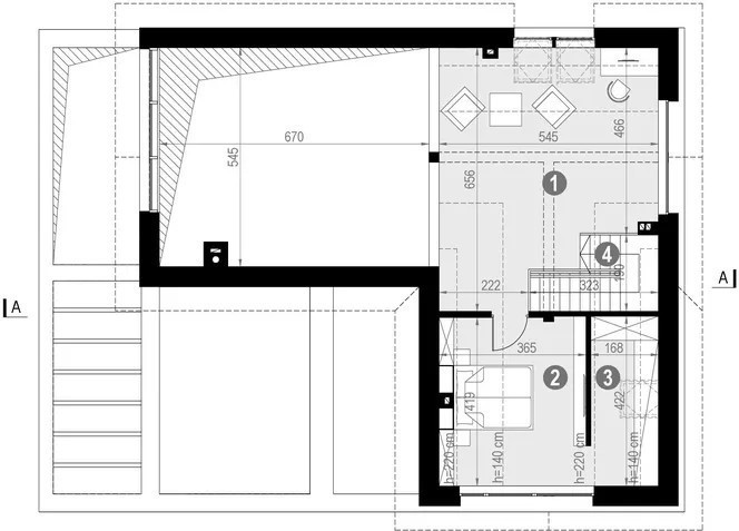 Powierzchnia całkowita: 250 m², 2 kondygnacje (parter + piętro + piwnica)