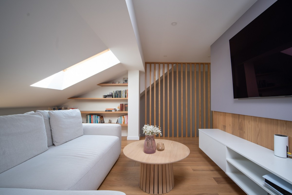 Otwarta strefa dzienna - domowa biblioteka, przestrzeń telewizyjna lub strefa chilloutu.