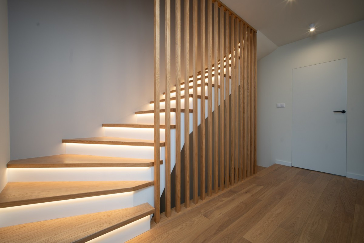 Dębowe schody z LED-owym podświetleniem,