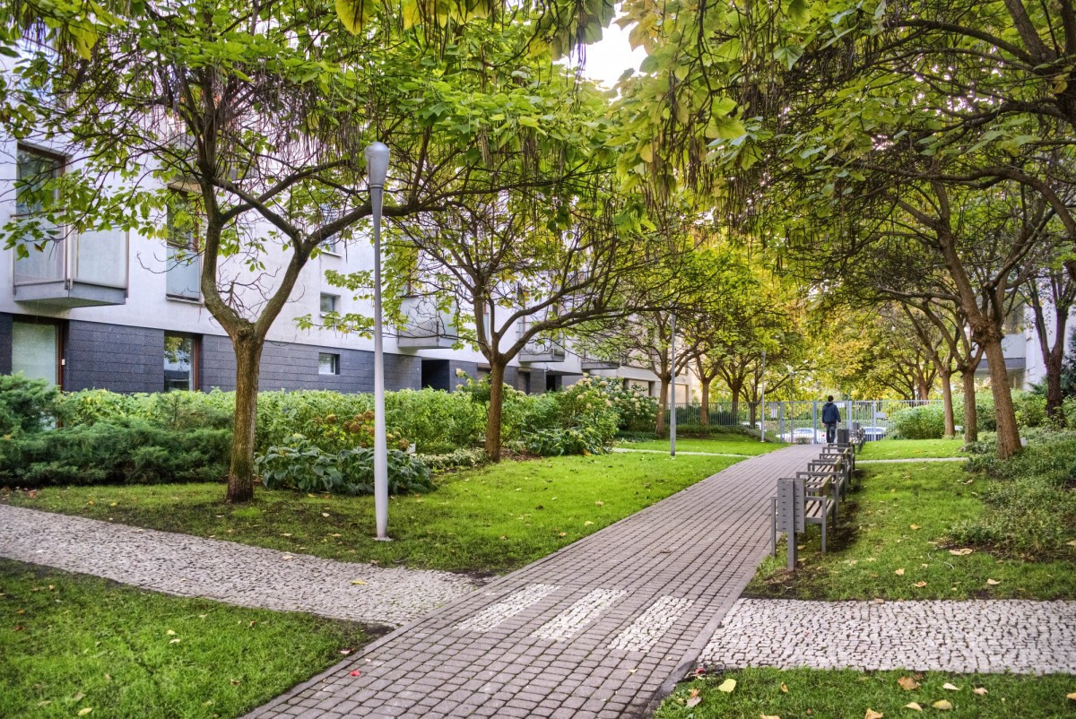 Miejsce ciche, oddalone od ruchliwej ulicy, otoczone zielenią.