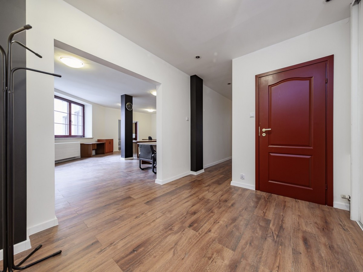 Nieruchomość aktualnie przygotowana jest pod prowadzenie działalności (kancelaria/biuro), pierwotnie było to mieszkanie. Możliwość dowolnej aranżacji.