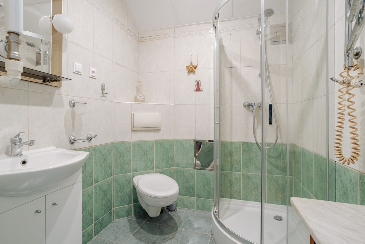 Łazienka - wyposażona w prysznic, toaletę i umywalkę