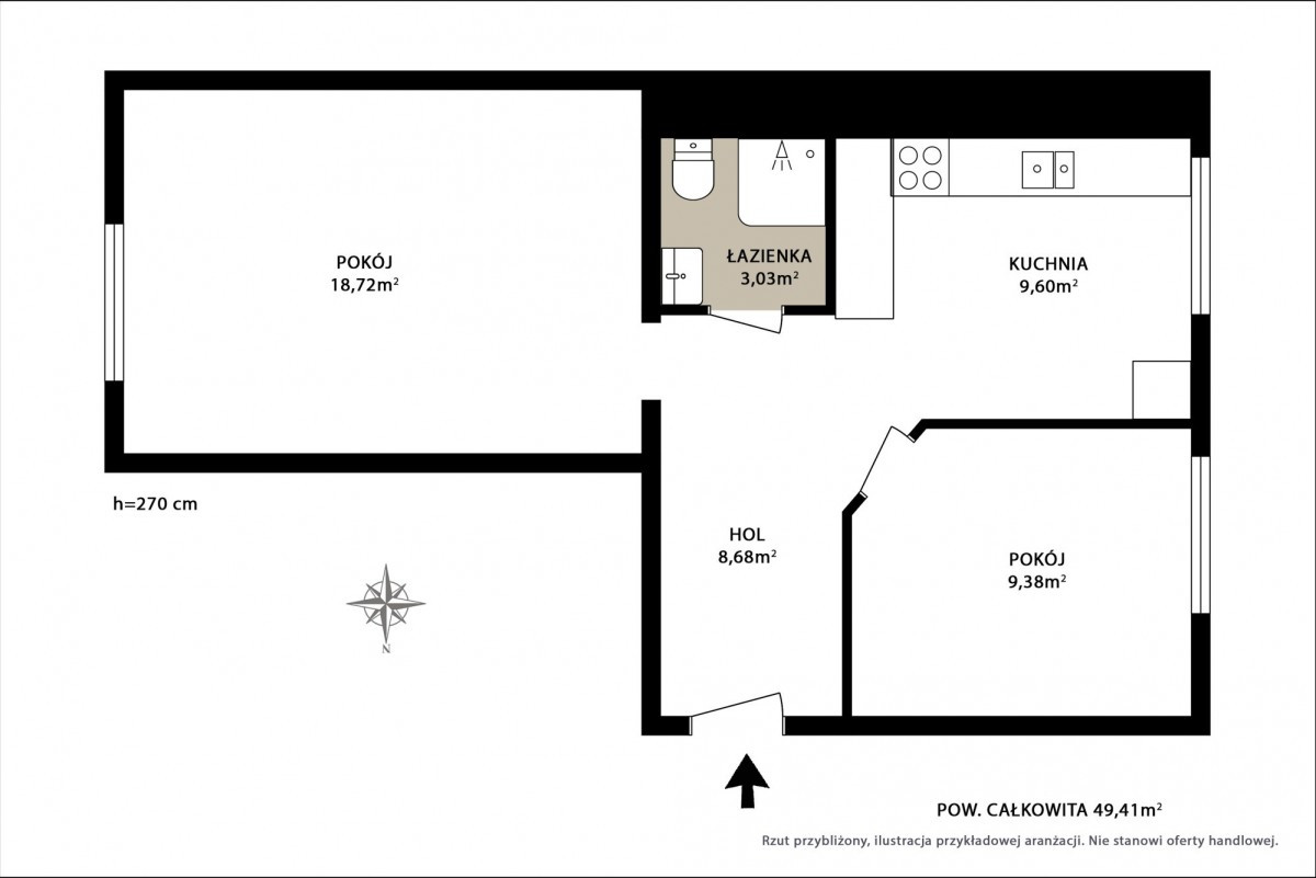 Lokal o powierzchni 49,41 m² został zaprojektowany w sposób przemyślany i praktyczny, z wyraźnym podziałem na strefę dzienną i prywatną. Układ mieszkania maksymalnie wykorzystuje dostępną przestrzeń, oferując funkcjonalność, wygodę i możliwość komfortowego życia na co dzień. Dwustronna ekspozycja zapewnia dostęp do naturalnego światła przez cały dzień.
