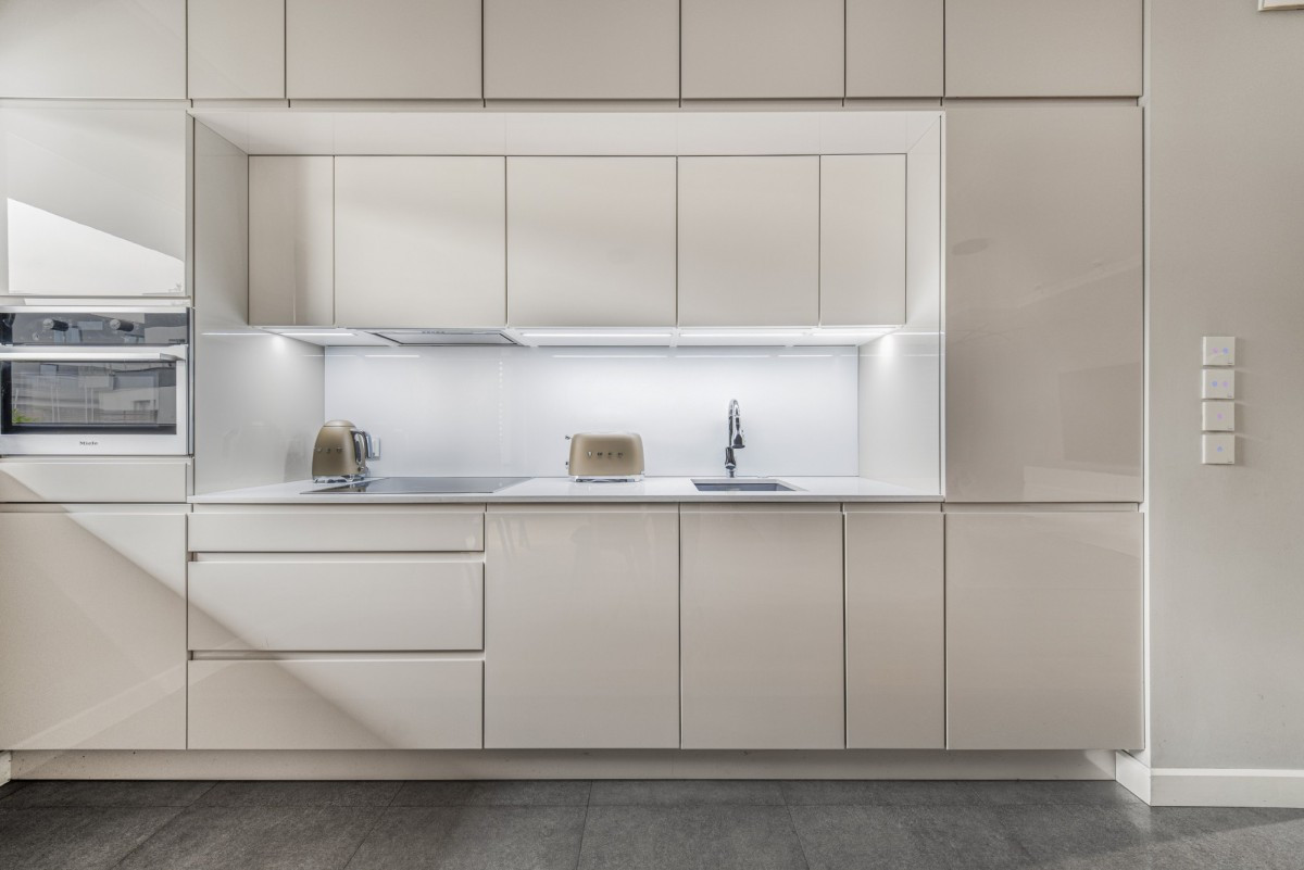 Kuchnia w zabudowie (firmy NOLTE) została wykonana na wymiar. Wyposażona w sprzęty AGD klasy premium.
