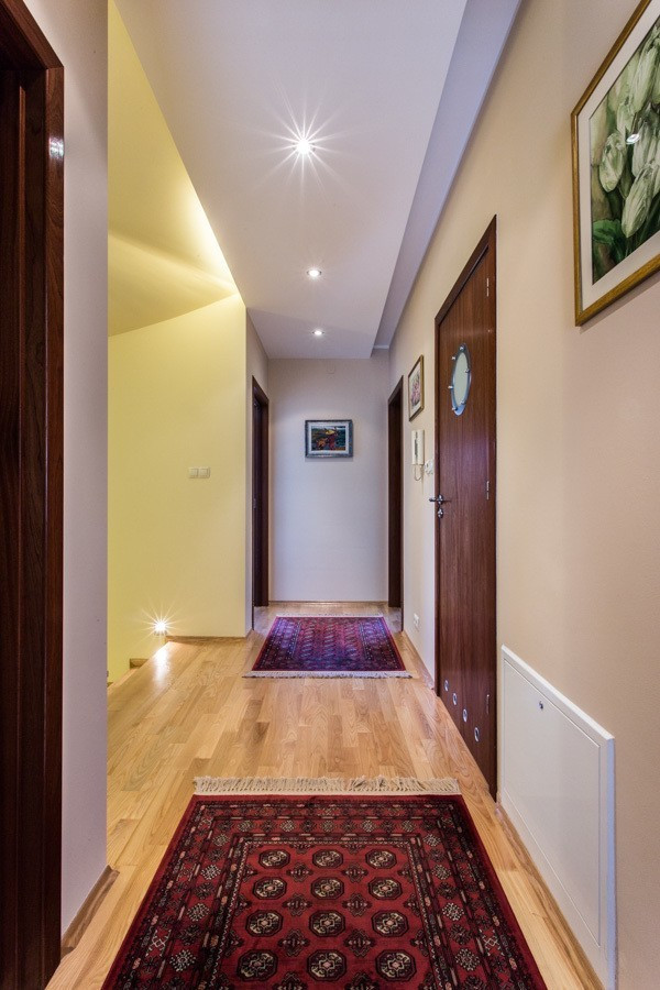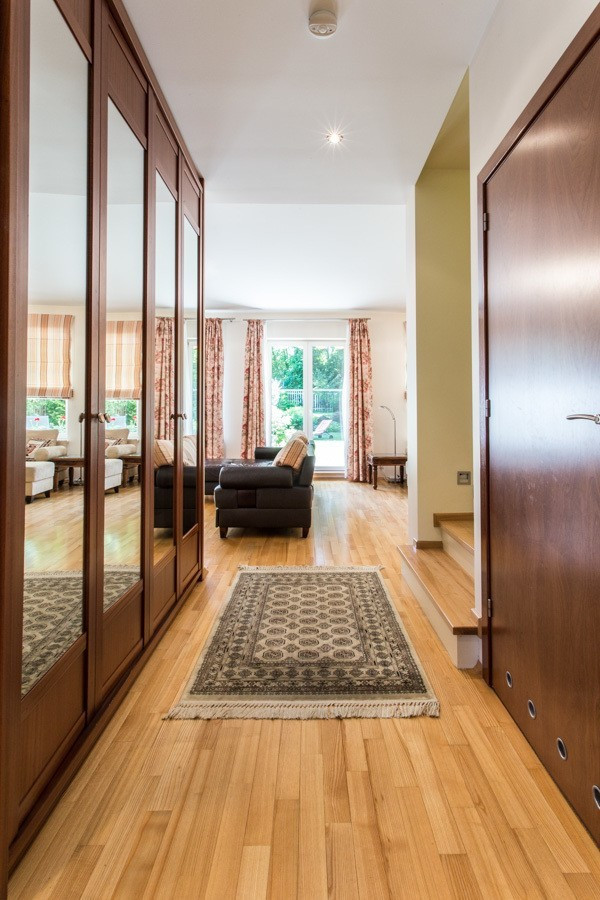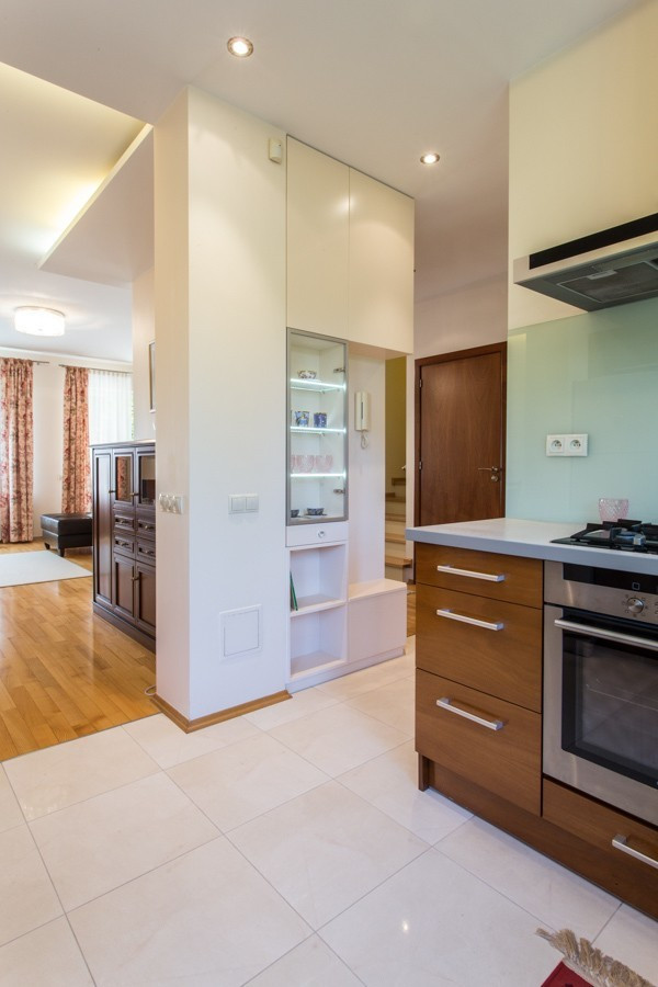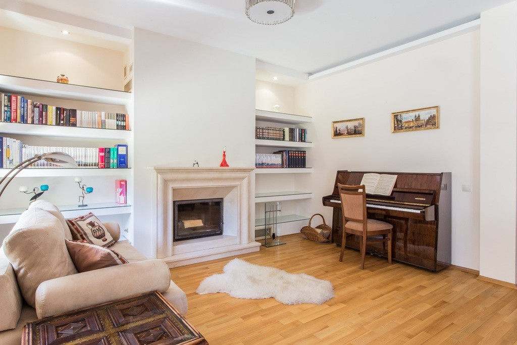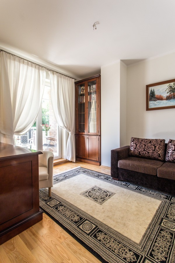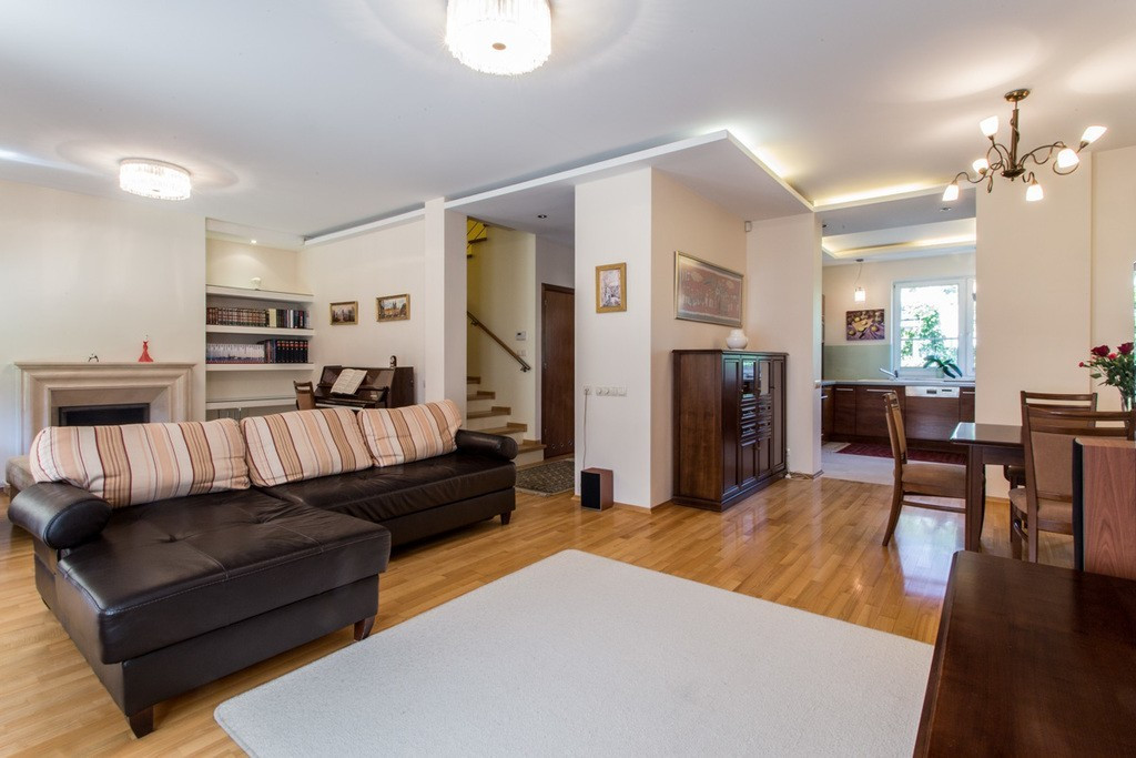 Elegancki, skrajny segment na prestiżowym, zamkniętym osiedlu Wille Laguna na Ursynowie. 198 m² powierzchni, 3 sypialnie, gabinet, 2 łazienki, toaleta, garaż, 2 dodatkowe miejsca postojowe przed domem i przepiękny ogród z częścią tarasową – idealne miejsce do zamieszkania.:: Atuty? Wysoki standard wykończenia. Kameralny ogród z automatycznym nawadnianiem i pełną prywatnością. Jasne, słoneczne wnętrza. Bezpieczne, strzeżone osiedle 24/7. Wspólny plac zabaw, zadbany park i malownicze jeziorko. Bezpośrednie sąsiedztwo Lasu Kabackiego – zaledwie 150 m od domu.:: Czy to jest to, czego szukasz?Jeśli cenisz elegancję, komfort, funkcjonalne wnętrza i doskonałą lokalizację – ten dom spełni Twoje oczekiwania. Na parterze znajduje się salon z kominkiem oraz zabudową biblioteczną, który łączy się z jadalnią i kuchnią. Dodatkowo toaleta dla gości oraz ogrzewanie podłogowe (w kuchni, przy wejściu i we wszystkich łazienkach). Z salonu wychodzi się na słoneczny taras z markizą, otoczony zielenią. Na piętrze znajduje się główna sypialnia z łazienką en-suite, gabinet, druga łazienka z wanną i dwie kolejne sypialnie z wbudowanymi garderobami. Z gabinetu i sypialni wyjście na zadaszoną loggię z widokiem na ogród. Poddasze to przestronna, wielofunkcyjna przestrzeń – świetna jako pokój zabaw, gościnny lub dodatkowy salon. Znajduje się tu także praktyczna pralnia z pralką i suszarką oraz liczne, estetycznie zabudowane schowki. Cały dom wykończony z dbałością o detale – parkiet jesionowy, gres w kuchni i łazienkach, starannie zaprojektowane zabudowy i miejsca do przechowywania. Drewniany Domek w ogrodzie. Panele Fotowoltaiczne na dachu.:: Co w okolicy?Rozległe tereny zielone: Las Kabacki (150 m) oraz dwa parki, w tym jeden bezpośrednio przy domu o powierzchni ok. 9 tys. m2 oraz drugi ze stawem o powierzchni kilku tysięcy m2. W pobliżu znajduje się także pełna infrastruktura miejska: sklepy (Lidl, Selgros, skład win), szkoły, przedszkola, w tym placówki międzynarodowe. W odległości kilku minut jazdy samochodem mamy do dyspozycji centrum handlowe Auchan, Leroy Merlin, Decathlon, Desinger Outlet Warszaawa oraz San Park Piaseczno.:: Jak z komunikacją?Bezproblemowa komunikacja z centrum Warszawy, lotniskiem i biznesowymi częściami miasta. Dojazd samochodem zajmie maksymalnie 15-20 minut. Przystanek autobusowy w odległości 7 minut pieszo, z którego kursuje kilka linii, które zapewniają bezpośrednie połączenie z linią Metra.:: Szkoły:Kanadyjska (4 minuty/1,5 km).Amerykańska (Ursynów lub Konstancin) (ok. 15 - 20 minut samochodem).Niemiecka (Wilanów) (ok. 15 - 20 minut samochodem).Na osiedle przyjeżdżają szkolne busy.:: Podsumowanie:Cena: 9900 LN.Dodatkowo płatne prąd, gaz, woda, śmieci, pielęgnacja ogrodu (kwota miesięczna ok 3000 PLN). Kaucja jednomiesięczna.Najem okazjonalny.Bez zwierząt.An elegant, end segment in the prestigious, gated community of Wille Laguna in Ursynów. 198 m² of area, 3 bedrooms, study, 2 bathrooms, toilet, garage, 2 additional parking spaces in front of the house and a beautiful garden with a terraced area - an ideal place to live. :: Advantages? High standard of finishing. Intimate garden with automatic irrigation and complete privacy. Bright, sunny interiors. Safe, guarded estate 24/7. A shared playground, a well-kept park and a picturesque lake. Direct proximity to the Kabacki Forest – only 150 m from the house. :: Is this what you are looking for? If you value elegance, comfort, functional interiors and an excellent location – this house will meet your expectations. On the ground floor there is a living room with a fireplace and a library, which is connected to the dining room and kitchen. Additionally, a guest toilet and underfloor heating (in the kitchen, at the entrance and in all bathrooms). The living room opens onto a sunny terrace with an awning, surrounded by greenery . On the first floor there is a master bedroom with en-suite bathroom, a study, a second bathroom with bathtub and two further bedrooms with built-in wardrobes. From the study and bedroom there is access to a covered loggia overlooking the garden. The attic is a spacious, multifunctional space – great as a playroom, guest room or additional living room. There is also a practical laundry room with a washing machine and dryer, as well as numerous, aesthetically built-in storage rooms. The entire house is finished with attention to detail - ash parquet, stoneware in the kitchen and bathrooms, carefully designed built-ins and storage spaces. Wooden House in the garden. Photovoltaic panels on the roof. :: What"s nearby? Extensive green areas: Kabacki Forest (150 m) and two parks, including one right next to the house with an area of approx. 9,000 m2 and the other with a pond with an area of several thousand m2. Nearby there is also full city infrastructure: shops (Lidl, Selgros, wine store), schools, kindergartens, including international facilities. Within a few minutes" drive we have the Auchan shopping center, Leroy Merlin, Decathlon, Desinger Outlet Warszaawa and San Park Piaseczno. :: How about communication? Hassle-free communication with the center of Warsaw, the airport and the business parts of the city. A car ride will take a maximum of 15-20 minutes. Bus stop 7 minutes walk away, from which several lines run, providing a direct connection to the Metro line. :: Schools: Canadian (4 minutes/1.5 km). American (Ursynów or Konstancin) (approx. 15 - 20 minutes by car). Niemiecka (Wilanów) (approx. 15 - 20 minutes by car). School buses arrive at the estate. :: Summary: Price: PLN 12,000. Additionally paid: electricity, gas, water, garbage, garden care (monthly amount approx. PLN 2,300). One month deposit. Occasional rental. No animals .