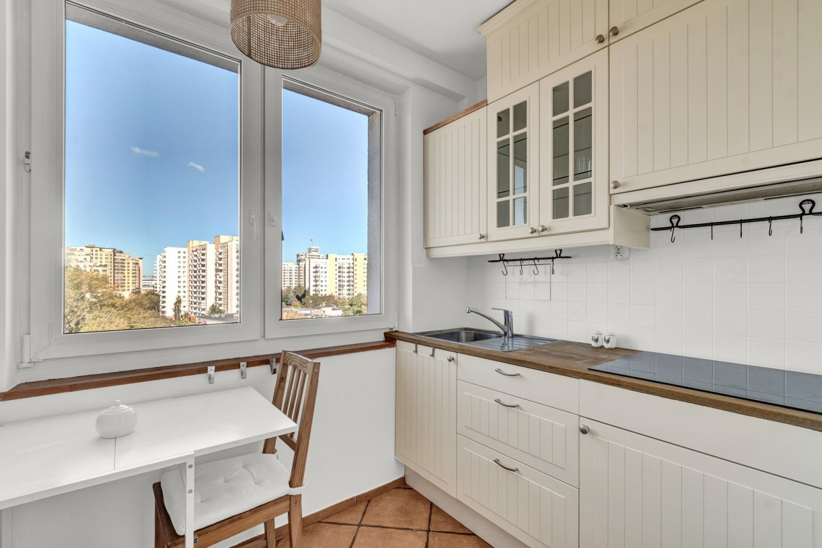 This 48 m² apartment is located on the top (7th) floor of a building with an elevator. Bright and spacious, it features a functional layout that supports both everyday living and remote work. One of the main highlights is the stunning panoramic view of central Warsaw visible from the windows.