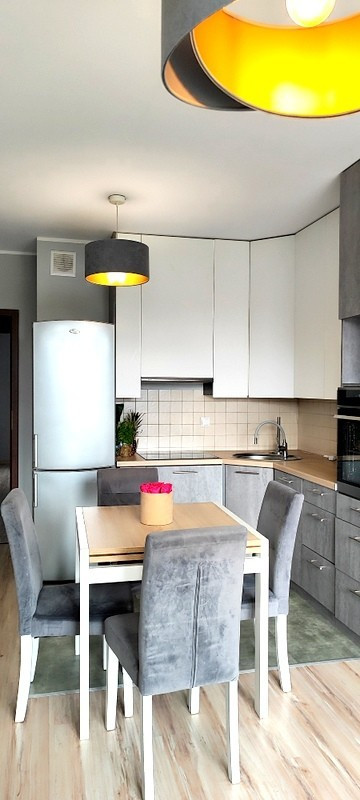 Kuchnia zaprojektowano z myślą o wygodzie użytkownika i kliknięciu jej w sprzęcie obsługującym marek (płyta, piekarnik, lodówka, zmywarka). Obszerna szafa wnękowa w przedpokoju pomieści wszystkie niezbędne akcesoria. Kuchnia została zmodernizowana w zastosowaniu roku.