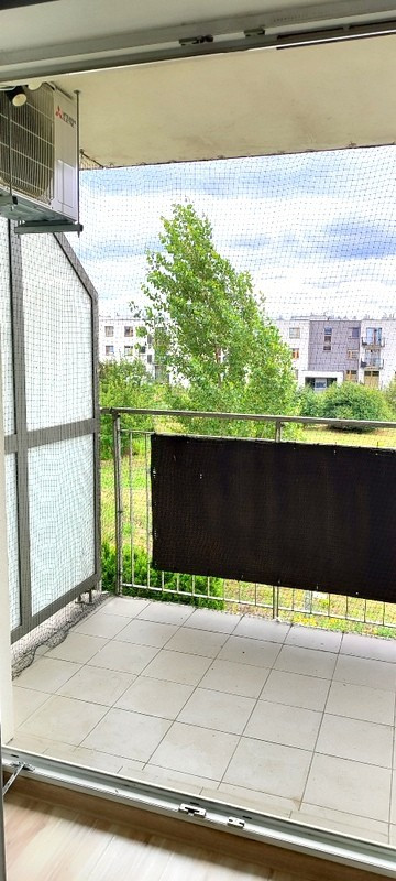 Balkon z widokiem na tereny zielone, może wystąpić przedłużenie salonu i miejsca do wypoczynku.