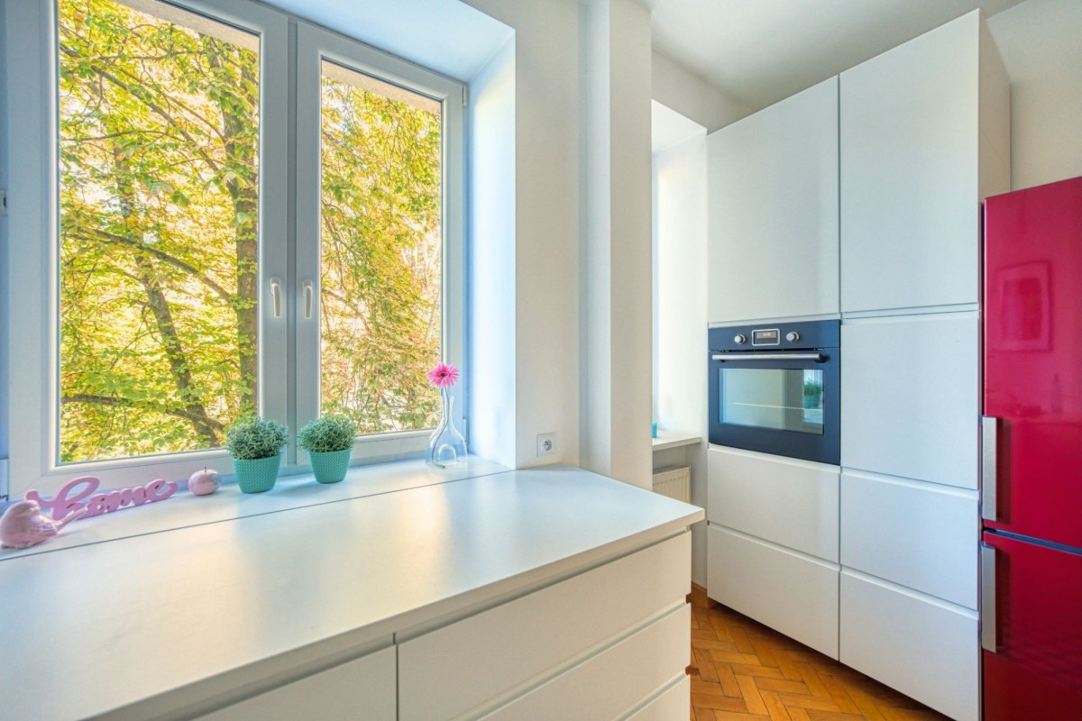 Jesteśmy obok Centrum, a mamy cichą ulicę pod oknami, a z drugiej strony drzewa i podwórko.