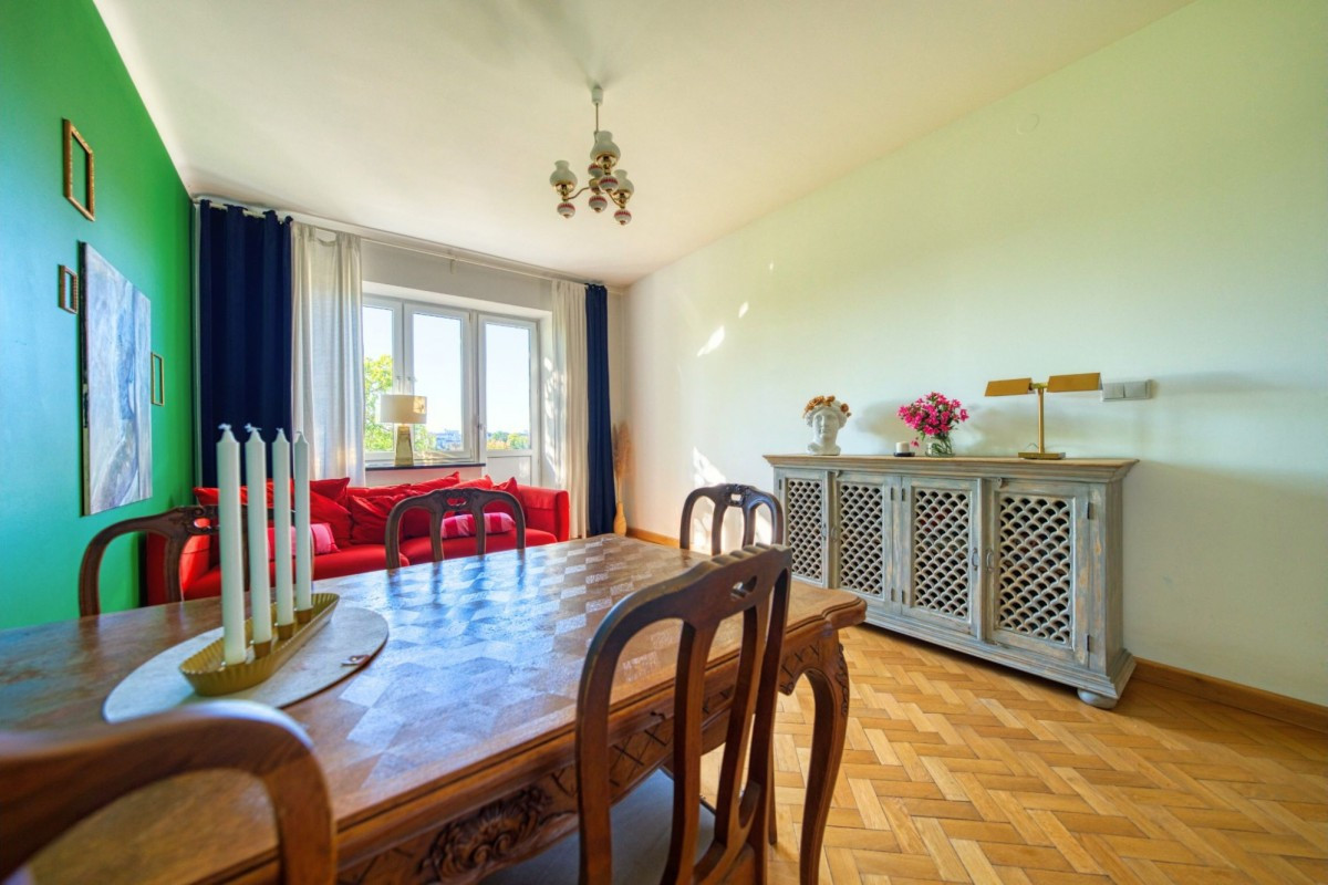 Znajduje się w bardzo dobrym miejscu komunikacyjnym, a zarazem ma olbrzymią zieloną przestrzenią za oknem.