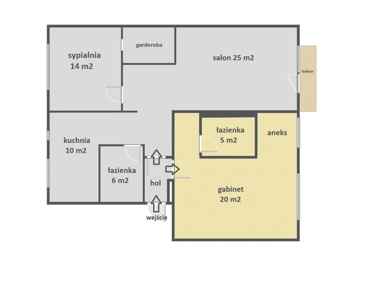 Istnieje również możliwość aranżacji na 4 pokojowe mieszkanie bez dużych nakładów finansowych.
