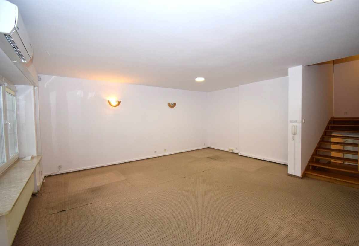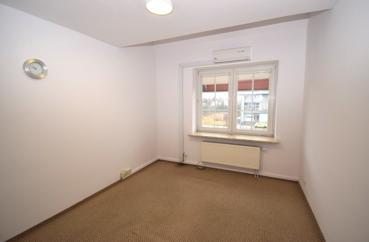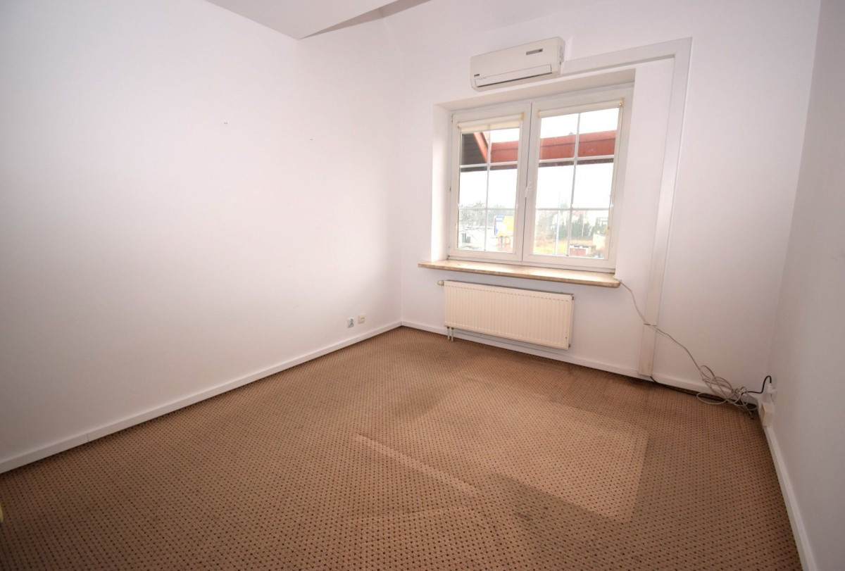 Połowa bliźniaka zaadaptowana na potrzeby biurowe z możliwością ekspozycji towaru (witryny na parterze).