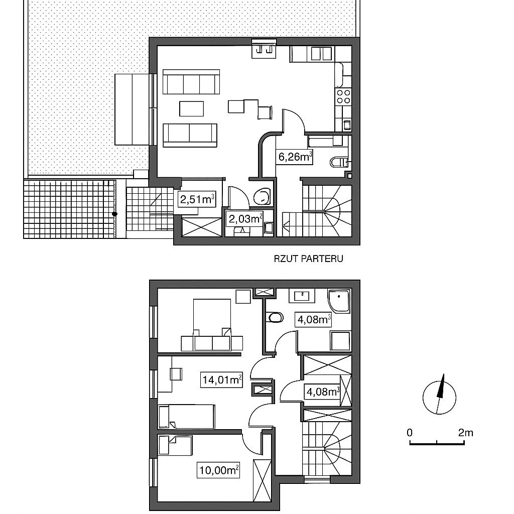 -dwie sypialnie o pow. 10,25 m oraz 10 m