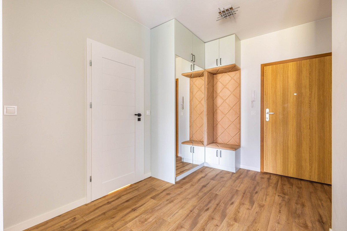 - hall z dużymi szafami w zabudowie