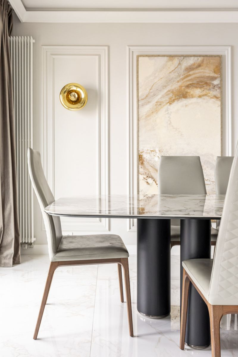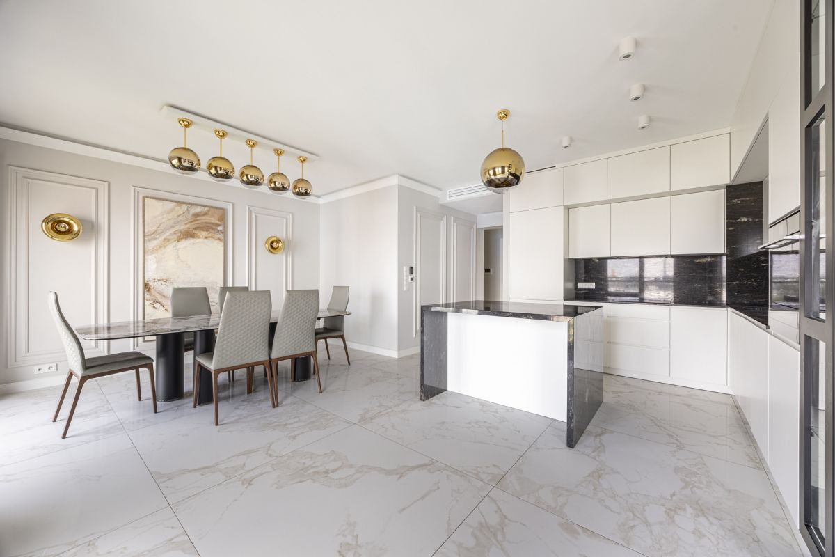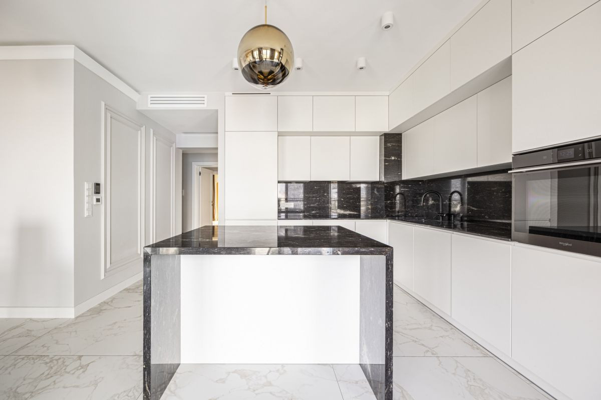 Wykończenie apartamentu cechuje najwyższa jakość materiałów i ponadczasowy styl. Wnętrza zostały urządzone z dbałością o każdy detal: