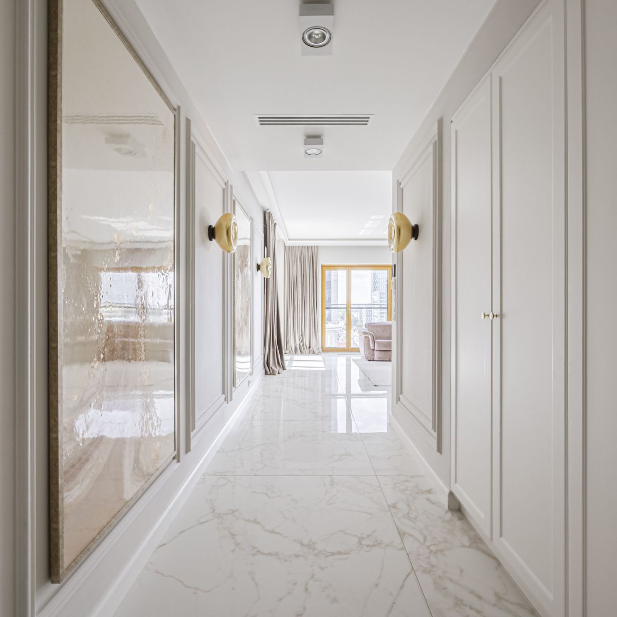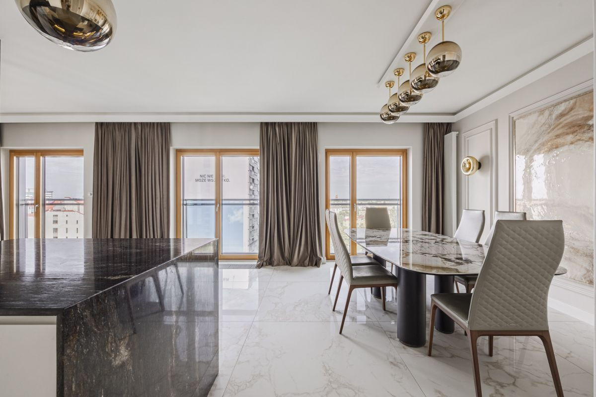 Apartament o powierzchni 145 m² znajduje się w prestiżowym kompleksie Mennica Residence i został starannie zaprojektowany przez renomowaną architektkę z myślą o komforcie, funkcjonalności i elegancji:
