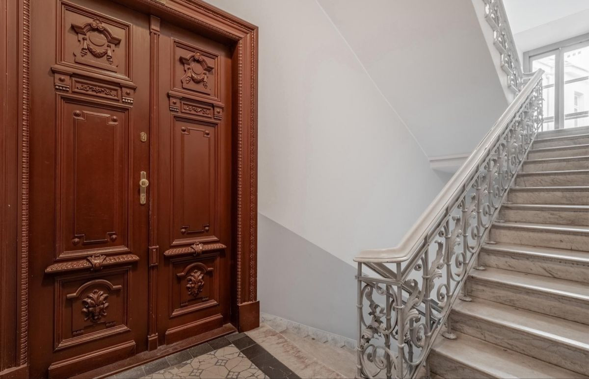 W mieszkaniu zostały zachowane oryginalne, piękne drzwi wejściowe. Kilka lat temu odnowiono elewację kamienicy, odświeżono klatki schodowe, zainstalowano zewnętrzną nowoczesną windę.