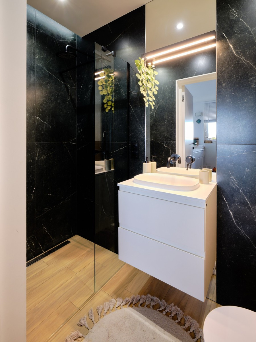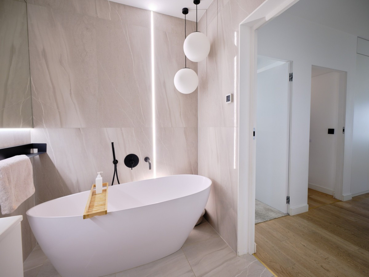 dwie łazienki - jedna z wanną, druga z prysznicem,