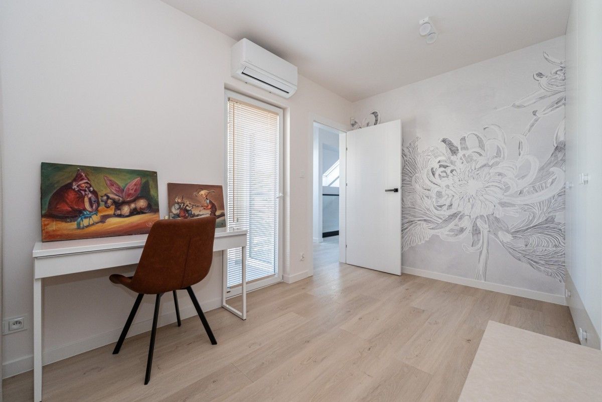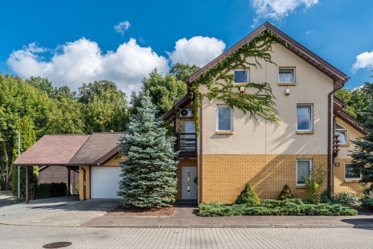 Na sprzedaż połówka bliźniaka o powierzchni użytkowej ok. 160m2 posadowiony na działce o powierzchni 341m2, na skraju lasu, na zamkniętym osiedlu przy ul. Modlińskiej 330. Na nieruchomość składają się 3 kondygnacje (4 pokoje plus 2 na poddaszu, 3 łazienki oraz osobna toaleta), garaż w bryle budynku, wiata garażowa i malowniczy ogród.