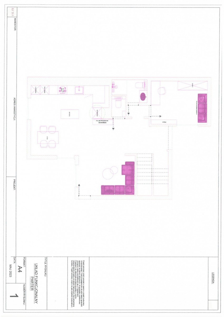 W bryle budynku znajduje się też garaż oraz wiata na drugi samochód. Na ok. 100 metrowy ogród sąsiadujący z lasem można się dostać wejściami z salonu, kuchni oraz garażu. Taras pokryty jest wytrzymałymi deskami kompozytowymi, ma on ok. 35m2.