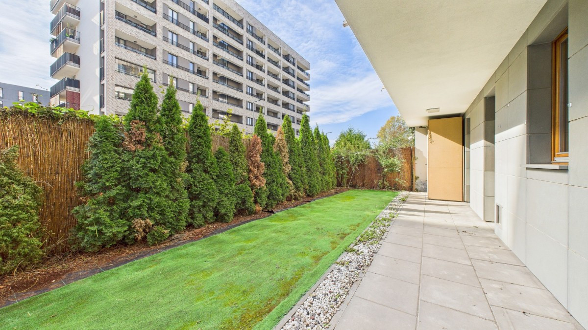 nowoczesny budynek z 2016 roku, zielone patio, zadbane części wspólne.