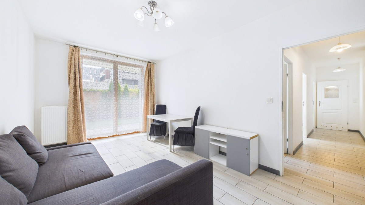 pokój dzienny z wyjściem na taras i ogródek,