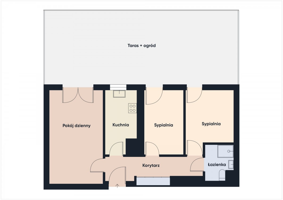 dwie sypialnie z wyjściem do ogrodu,