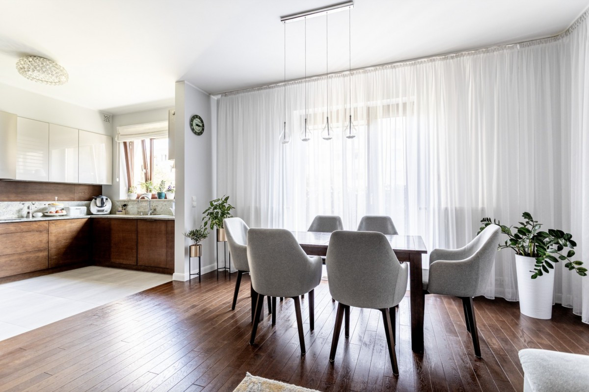 • salon z dużą kuchnią i wyjściem na taras oraz ogród o powierzchni ok. 40 m²,