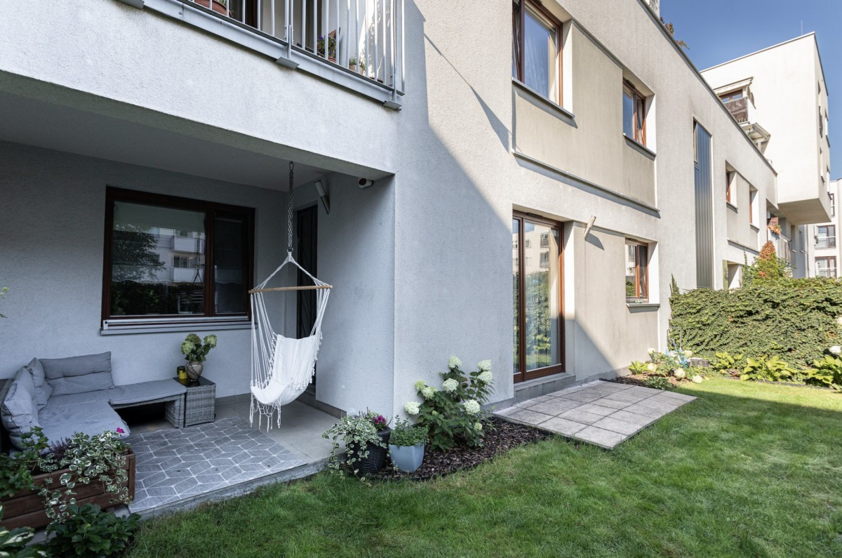 We are pleased to present a spacious, dual-aspect apartment of 82.5 m² with a large private garden, located at Kazachska 3 in Miasteczko Wilanów.