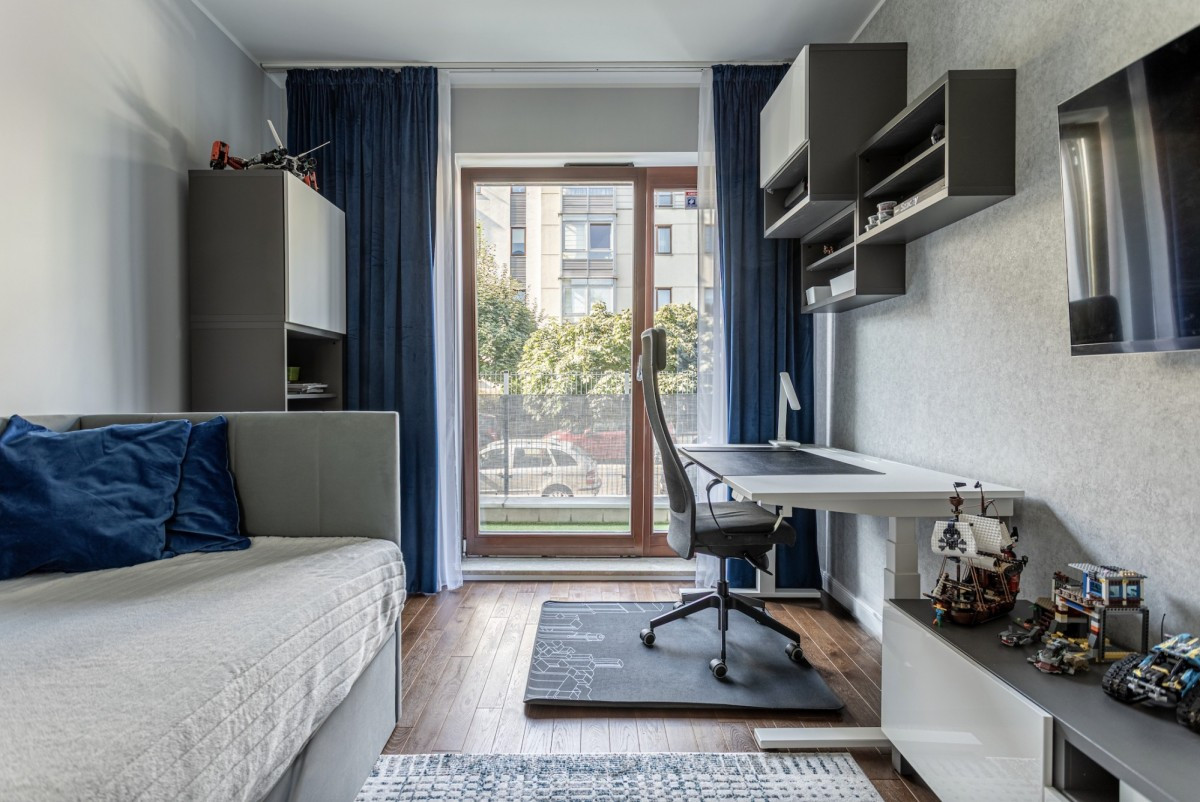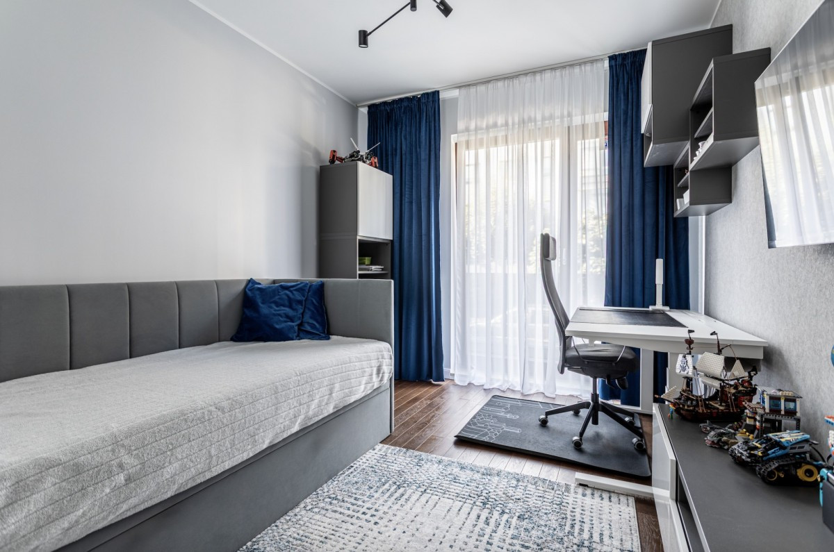 The apartment is located in a modern, well-maintained building with an elevator. The estate is intimate and secure, with an additional advantage of a communal courtyard featuring a playground - a great space for families and for relaxation surrounded by greenery.
