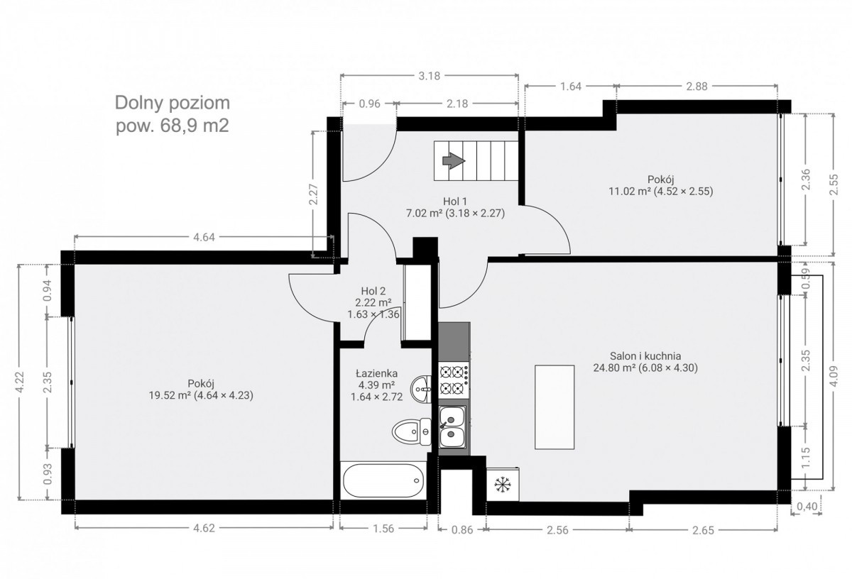 - salon z kuchnią - 24,8 m²