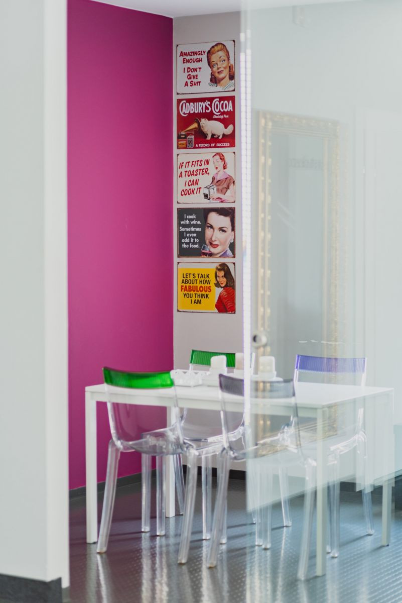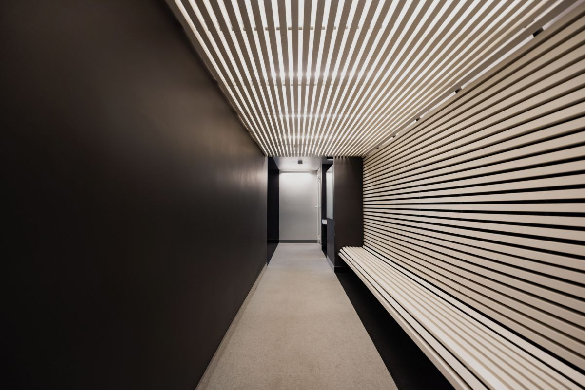 Kolorystyka utrzymana jest w modnym czarno-białym, monochromatycznym stylu, a pomieszczenia wyposażone są w szereg multi-funkcyjnych połączeń mających na celu zwiększenie możliwości ich konfiguracji, a co za tym idzie zwielokrotnienia wydajności. Przemyślana i starannie zaprojektowana sieć pozwala dowolnie dobierać zadaniowość pomieszczeń do aktualnie realizowanych projektów.