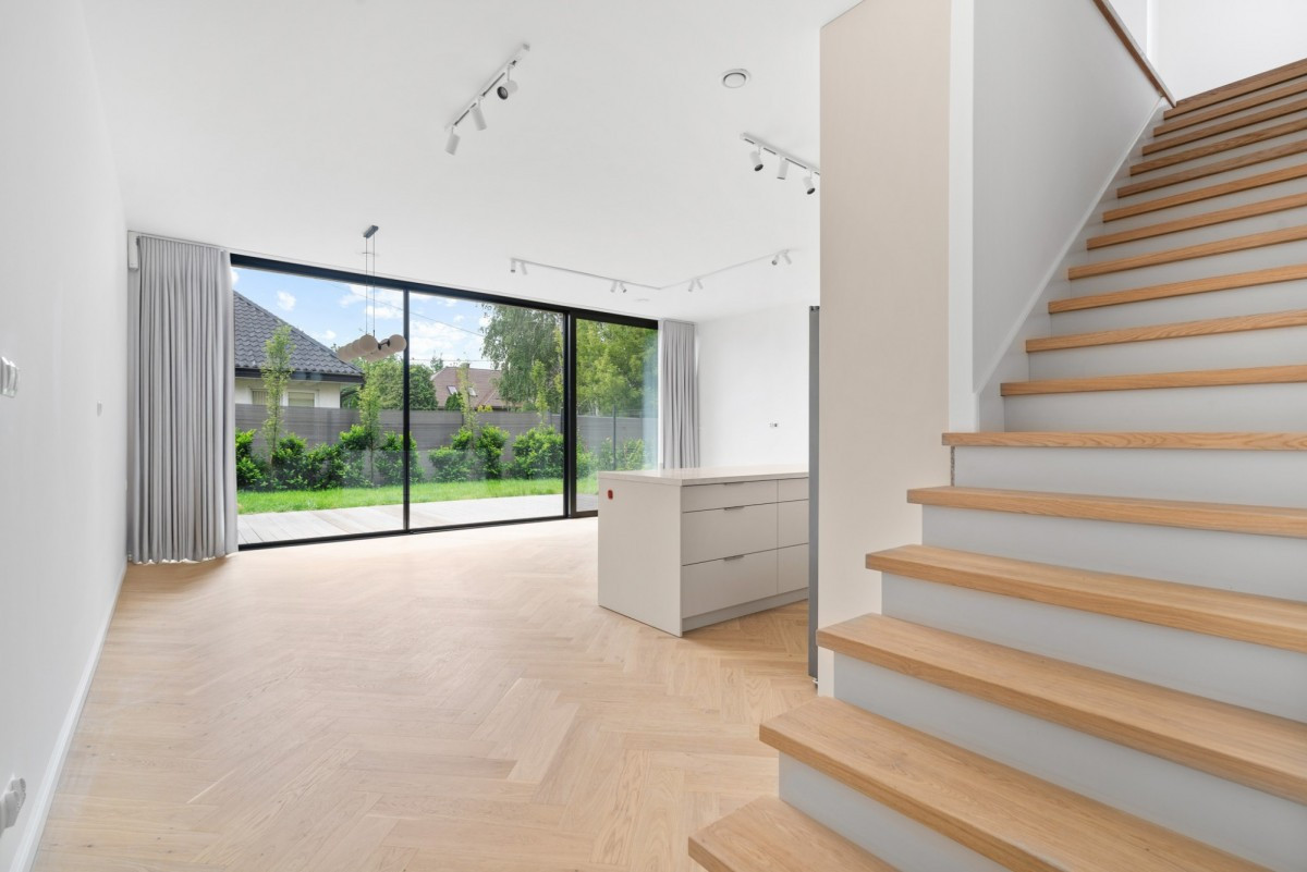 Przemyślany układ - przestronny salon z aneksem kuchennym, trzy sypialnie, gabinet, dwie łazienki, garaż oraz własny ogród.