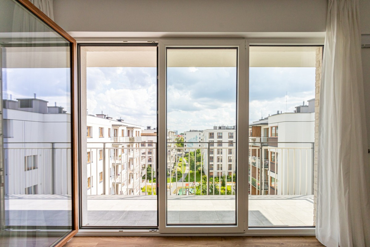balkon o powierzchni ponad 8 m², stanowiący doskonałą przestrzeń do odpoczynku, dużo miejsca do przechowywania i szaf w mieszkaniu.