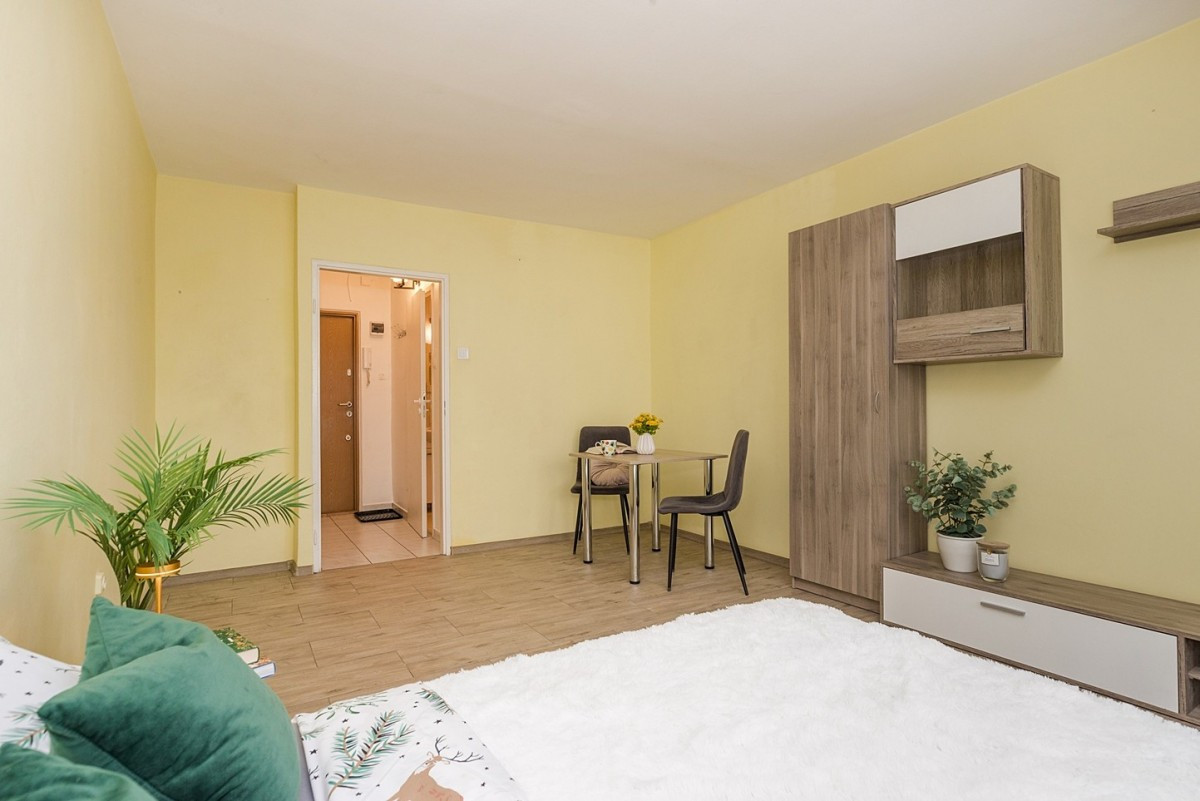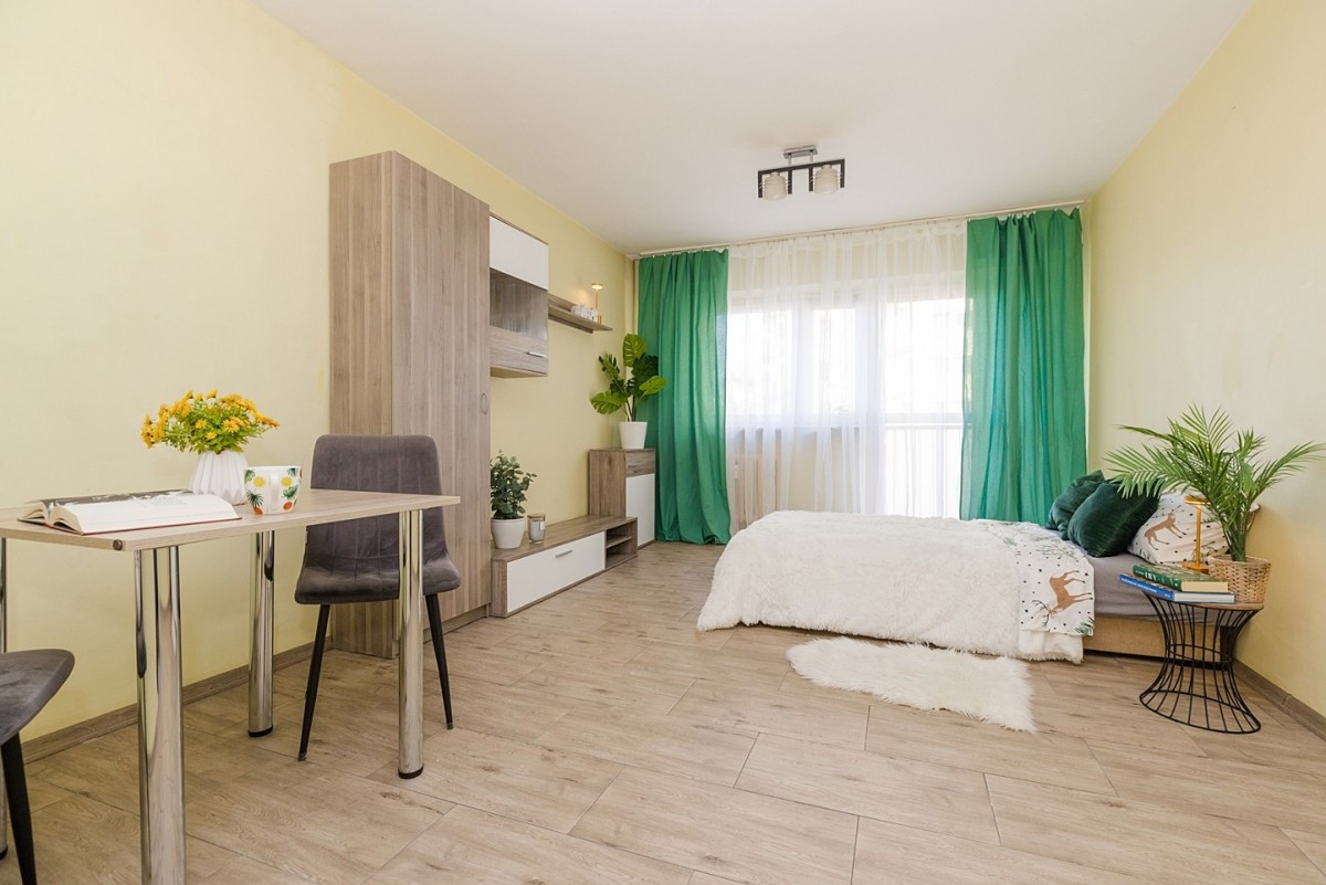 Lokal składa się z jasnego pokoju z balkonem od strony wschodniej, aneksu kuchennego oraz łazienki. Mieszkanie jest ciepłe, słoneczne i gotowe do zamieszkania - idealne dla studenta, singla lub jako pierwsze własne „M”.