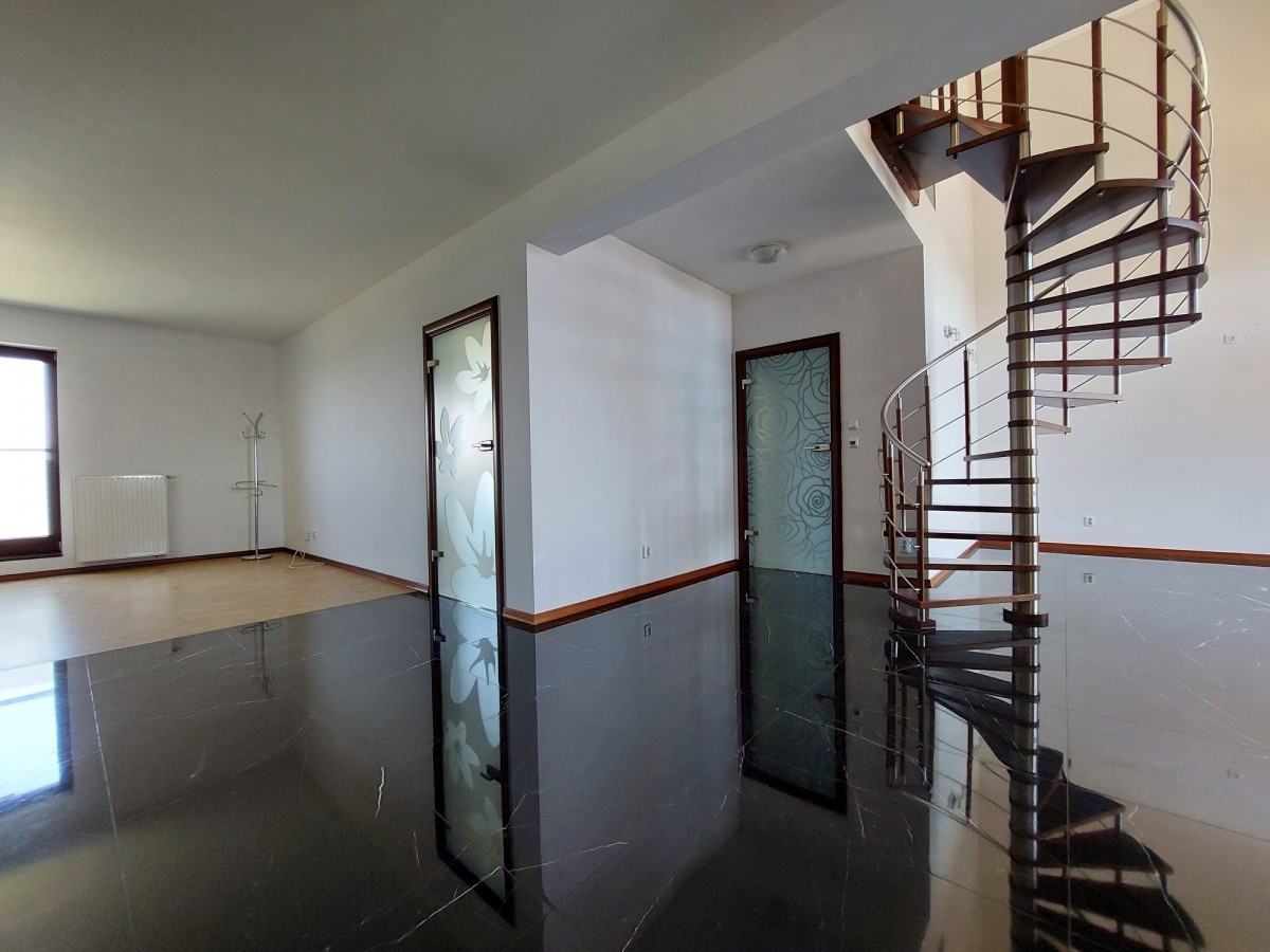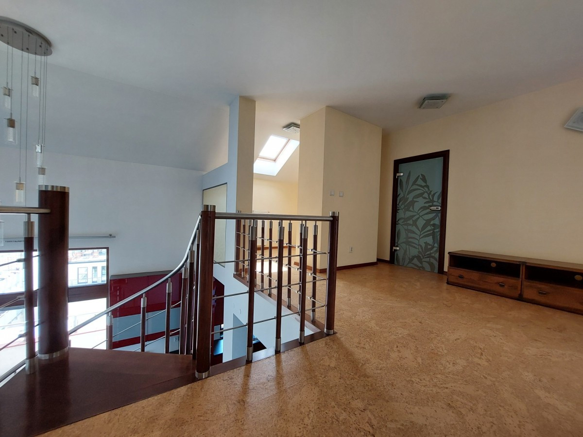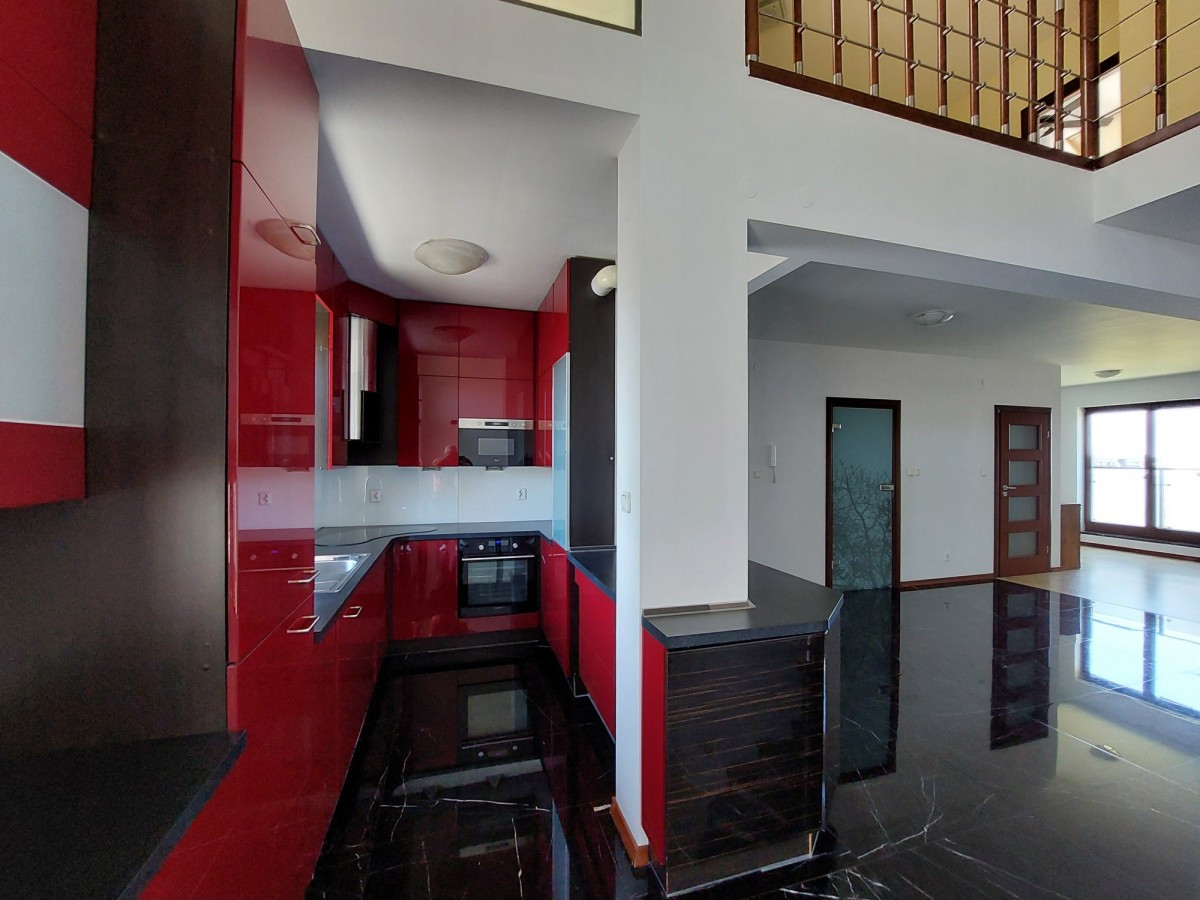 Powierzchnia tego dwupoziomowego apartamentu według księgi wieczystej wynosi 161,78 m2 + 10 m2 zadaszonego tarasu a powierzchnia po podłodze to już ok. 190 m2.