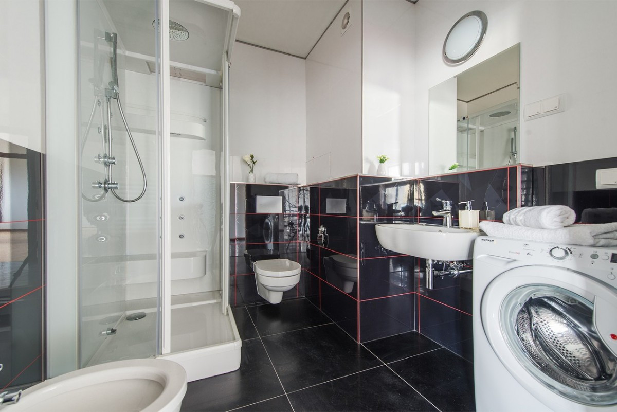 Do wykończenia wszystkich łazienek użyto materiałów najwyższej jakości takich firm jak: Marazzi, Cludi, Gira czy Keramag.