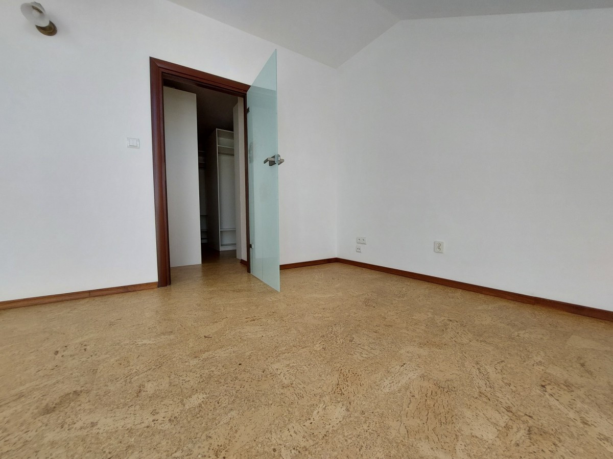 Na tym poziomie znajdują się także dwie łazienki. W jednej prysznic, WC i umywalka. W drugiej kabina parowa z dyszami masującymi, bidet, WC, umywalka i pralka. Mamy tu również gabinet - obecnie otwarty na hol, dwie sypialnie i pojemny schowek o powierzchni 4,5 m2.
