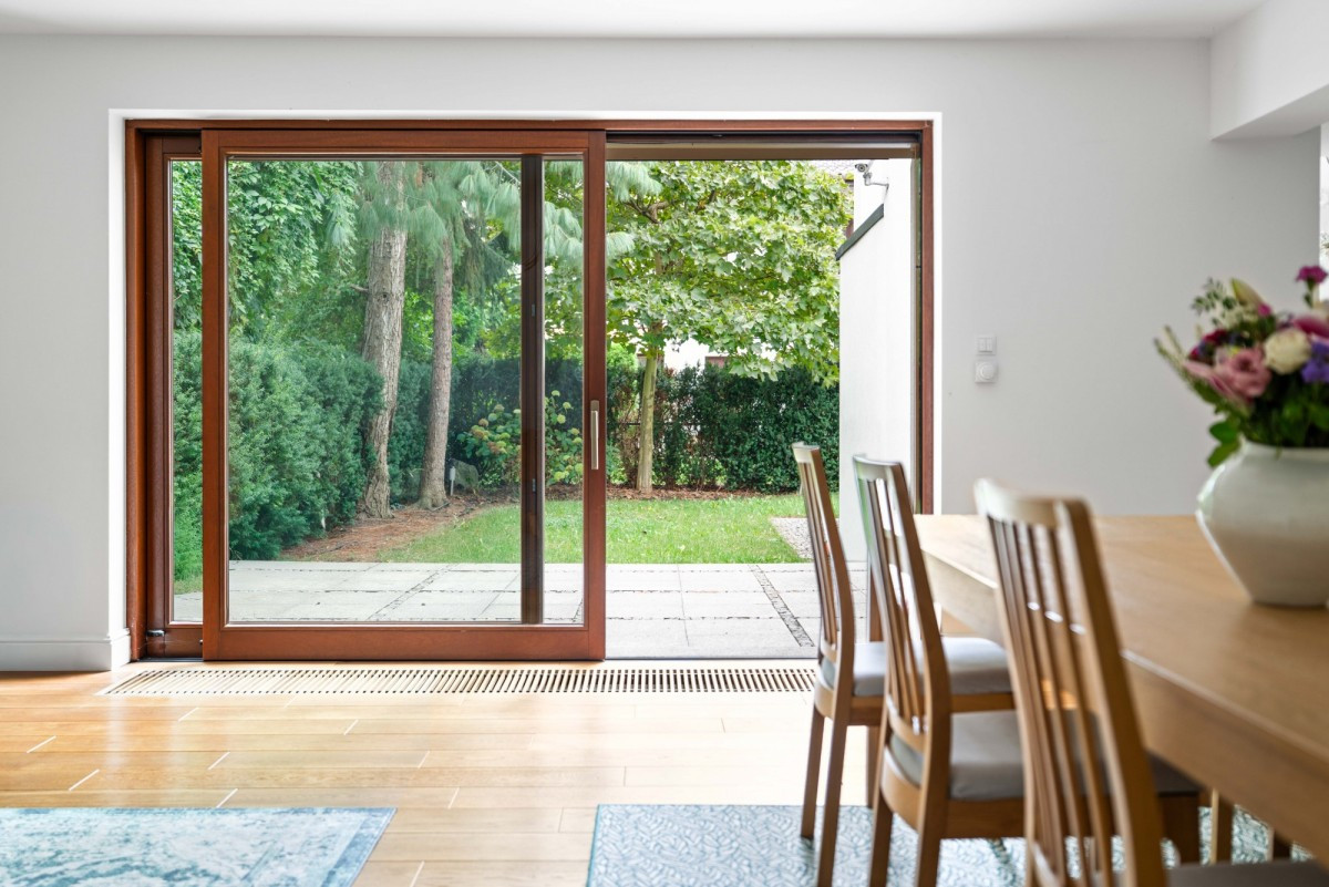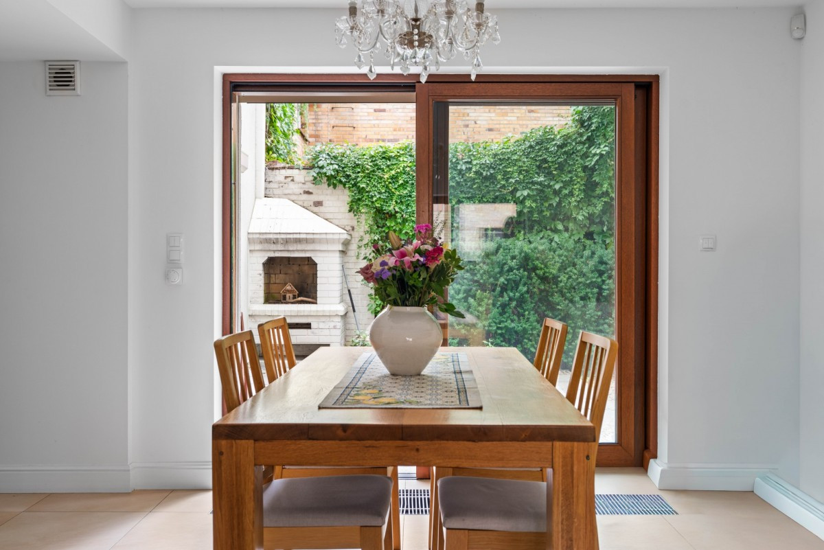 Kuchnia z jadalnią (17 m²) z bezpośrednim dostępem do ogrodu.