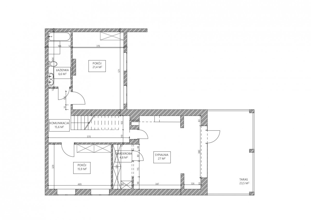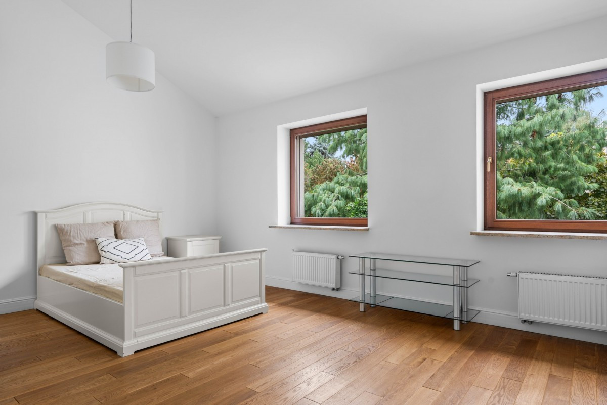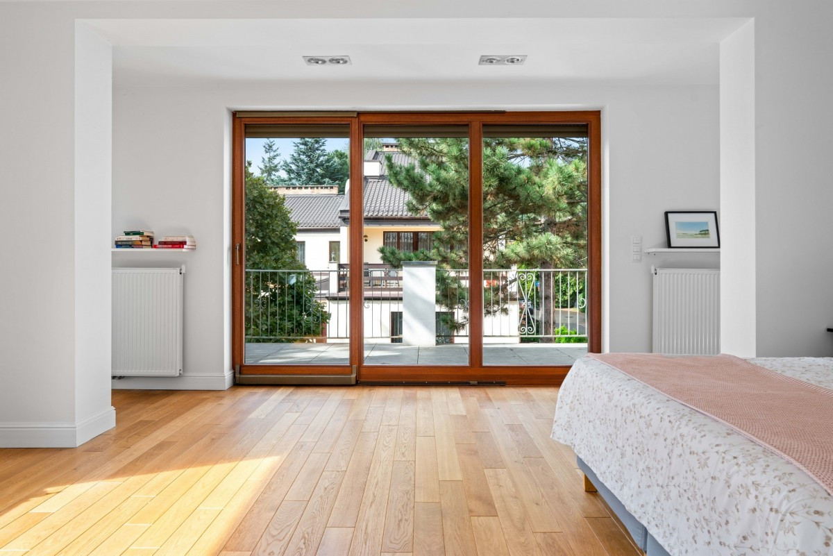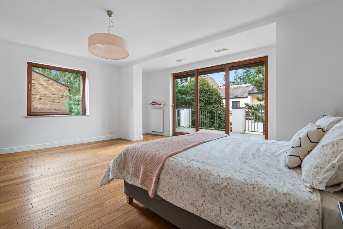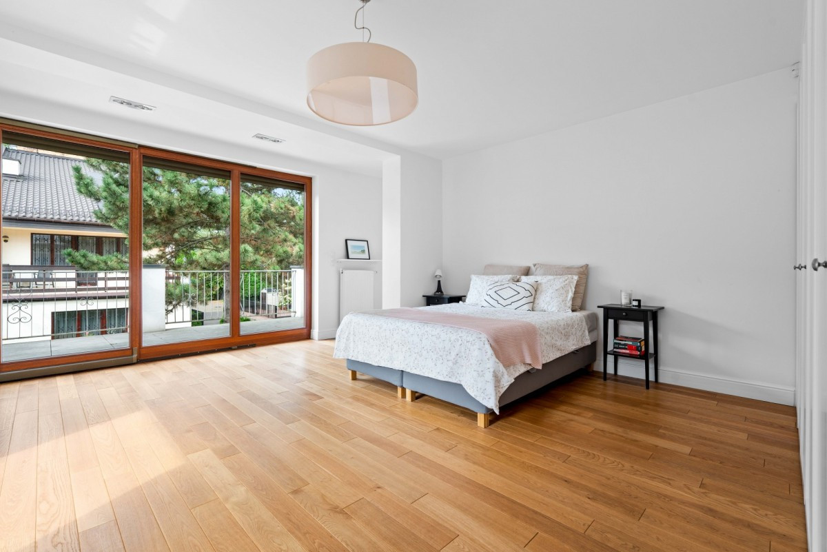 Główna sypialnia (27 m²) z wyjściem na przestronny taras (23,5 m²).