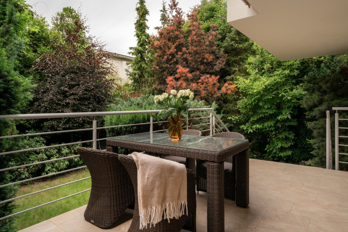 Sypialnia główna ma wyjście na intymny, prywatny taras, druga sypialnia i gabinet mają wspólny taras.