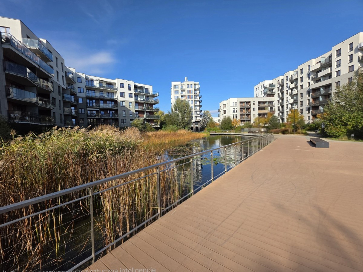 Zadbana zieleń w częściach wspólnych, place zabaw dla dzieci, oczko wodne.