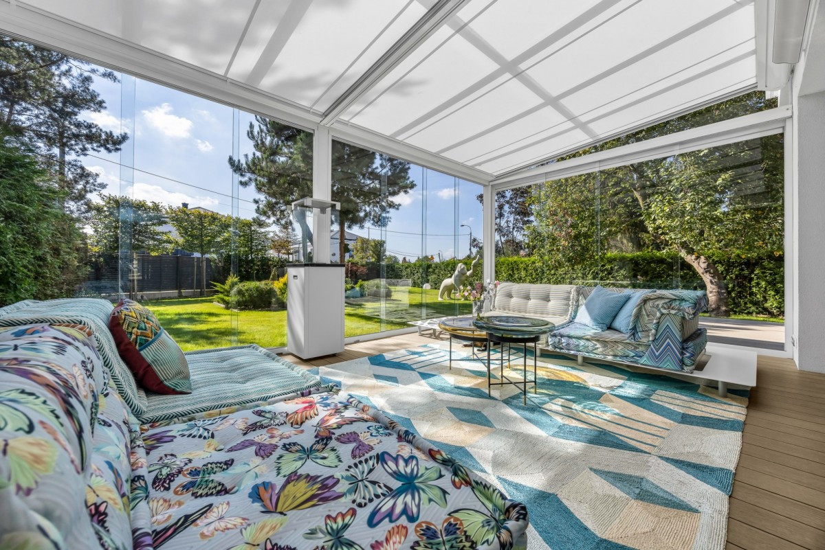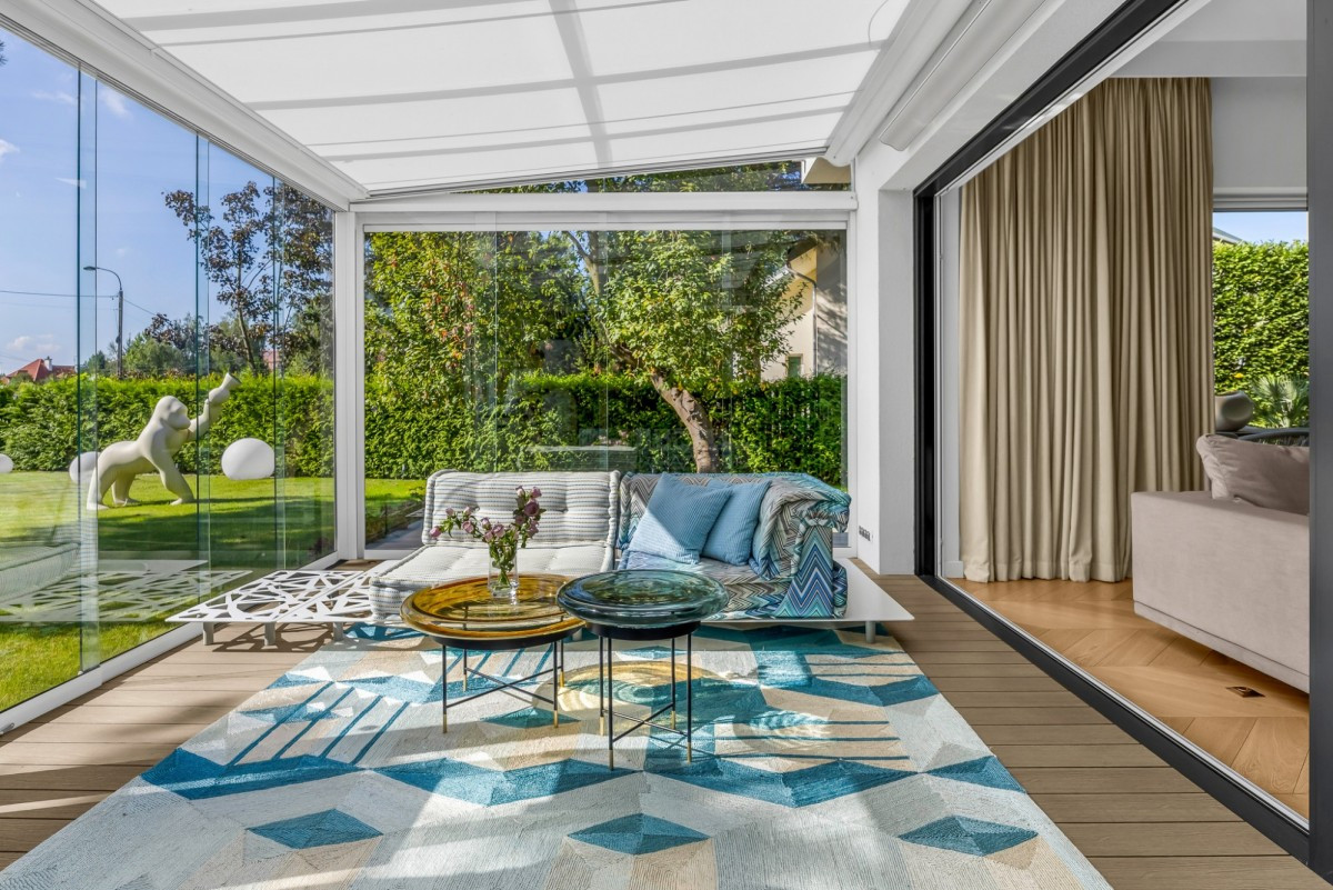 - Ogród zimowy - wyjątkowa przestrzeń wypoczynkowa przez cały rok, wyposażona w promienniki ciepła, meble Missoni oraz lampę Slide Cucun