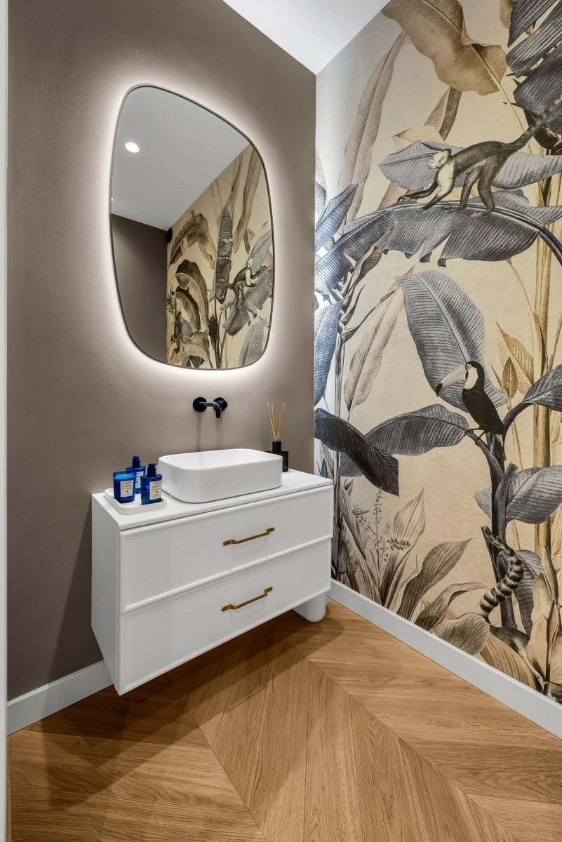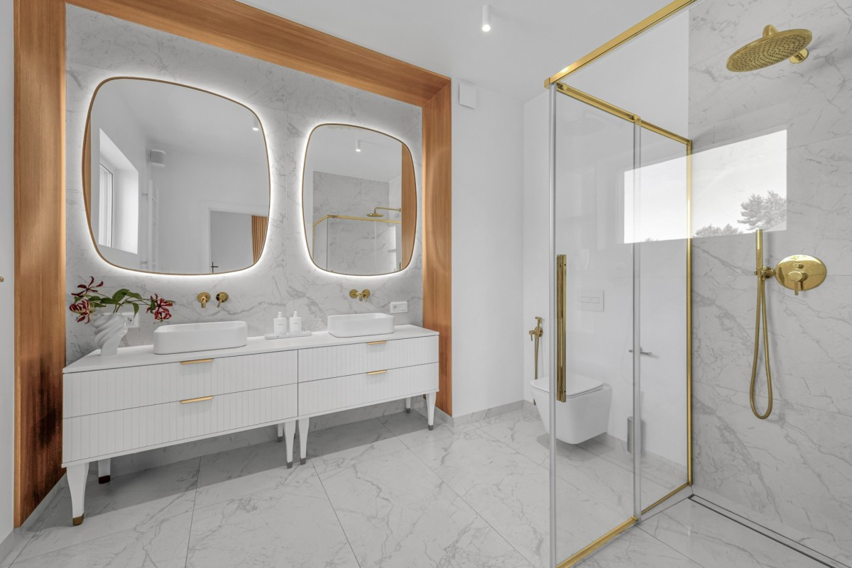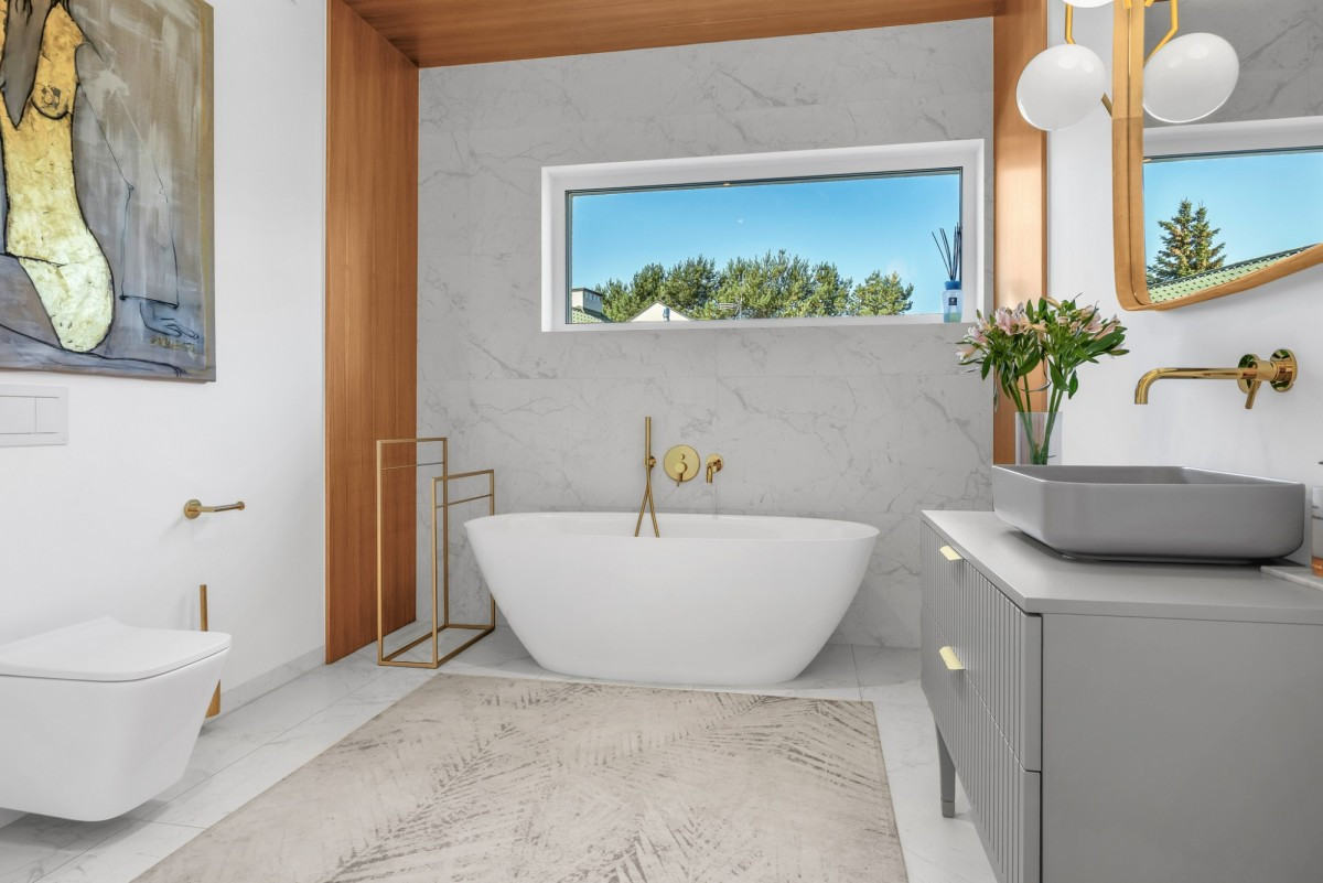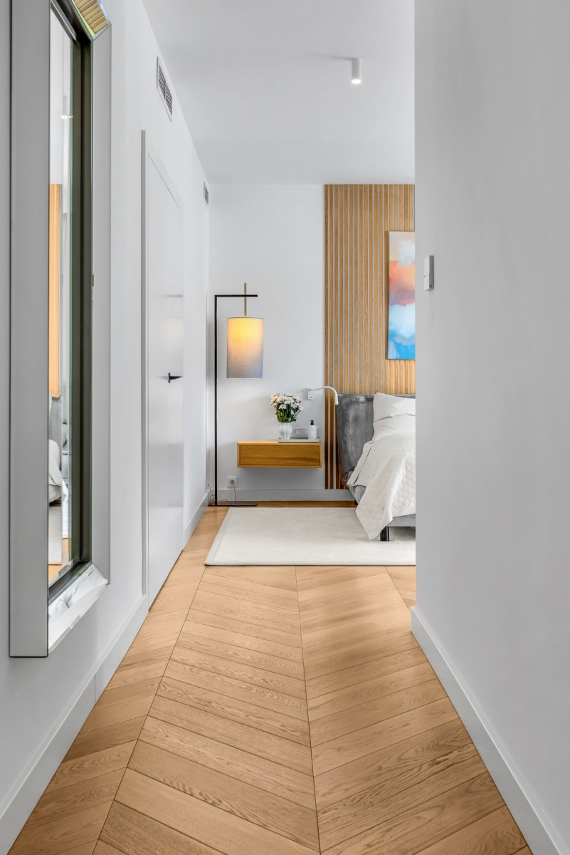 Dom wykończony został w bardzo wysokim standardzie, z użyciem materiałów i wyposażenia renomowanych marek. Projekt wnętrz to połączenie światowego designu z funkcjonalnym podejściem do przestrzeni - elegancko, nowocześnie, z przemyślanym układem i wyjątkową atmosferą.