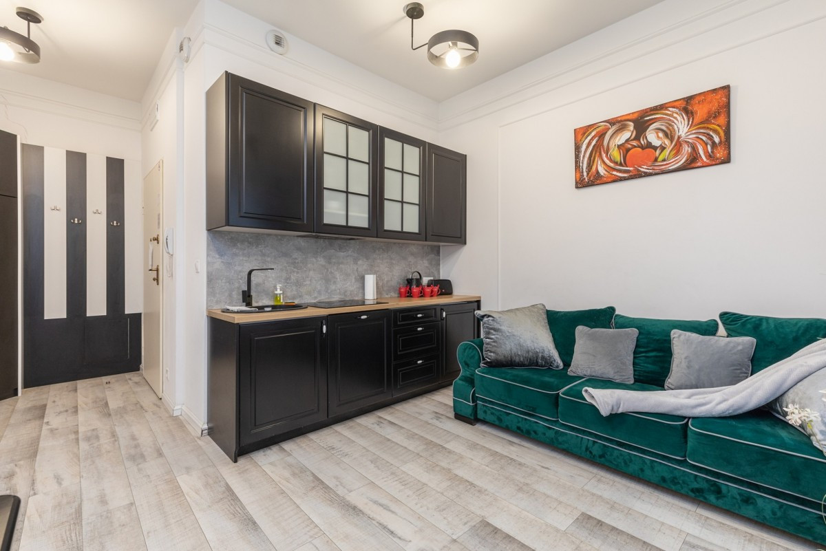 A ready to move in, ideally quiet one bedroom apartment in a pre-war revitalized tenement house, just next to Metro Stadion Narodowy.