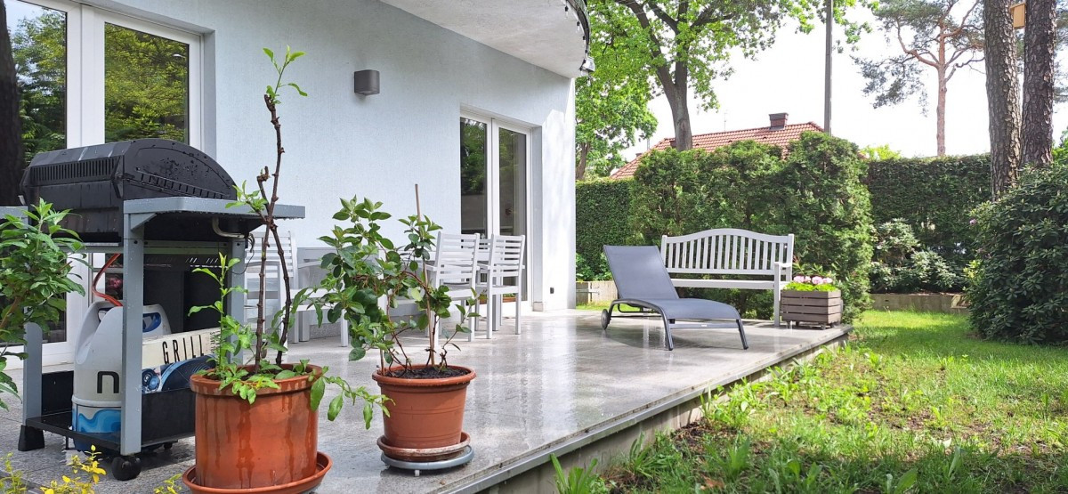 Dwa osobne wejścia, dwa osobne tarasy i dwa niezależne i piękne ogrody.