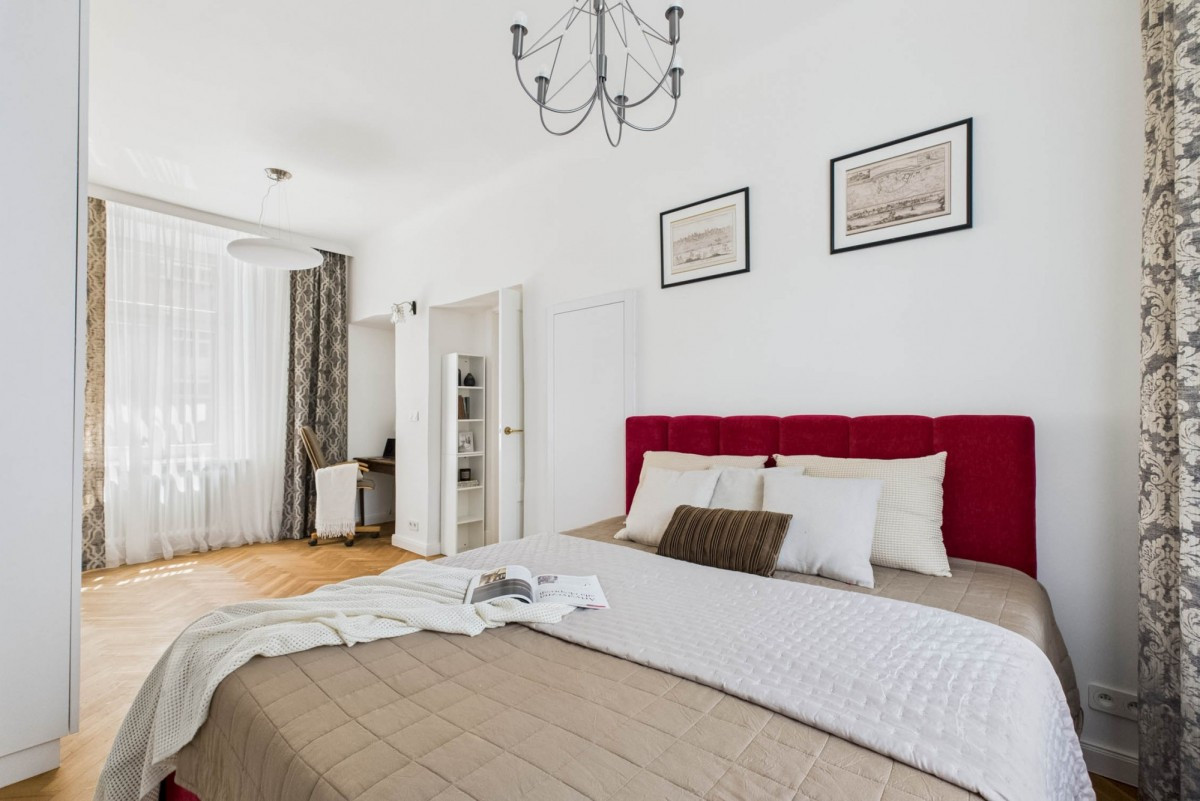 Though in the heart of Warsaw — the apartment is remarkably quiet. The only sound from the bedroom and kitchen windows is birdsong.