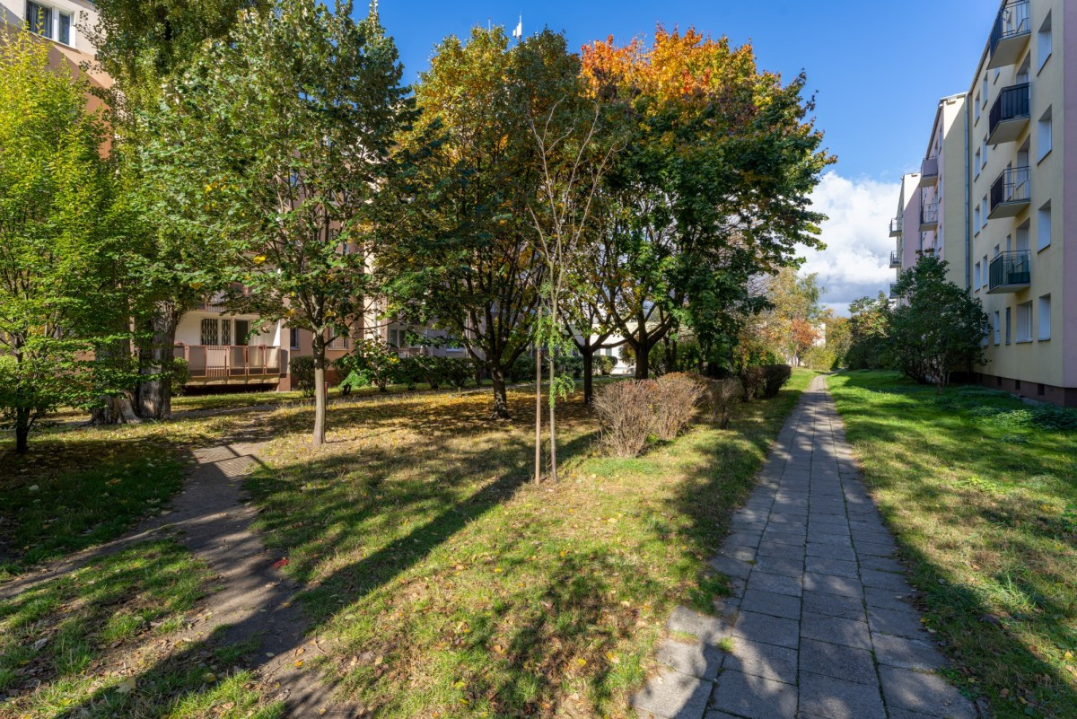 Mieszkanie znajduje się na wysokim parterze gdzie oferuje widok na otaczającą budynek zieleń i dzięki południowo-zachodniej ekspozycji można cieszyć się naturalnym światłem. Tuż za oknem znajdziesz mnóstwo zieleni a na wyciągnięcie ręki masz do dyspozycji okoliczne parki m.in. „Forty Korotyńskiego” , „ Malickiego”, „Park Wyględów”. W bezpośrednim otoczeniu budynku, znajduje się parking wyłącznie dla mieszkańców osiedla.