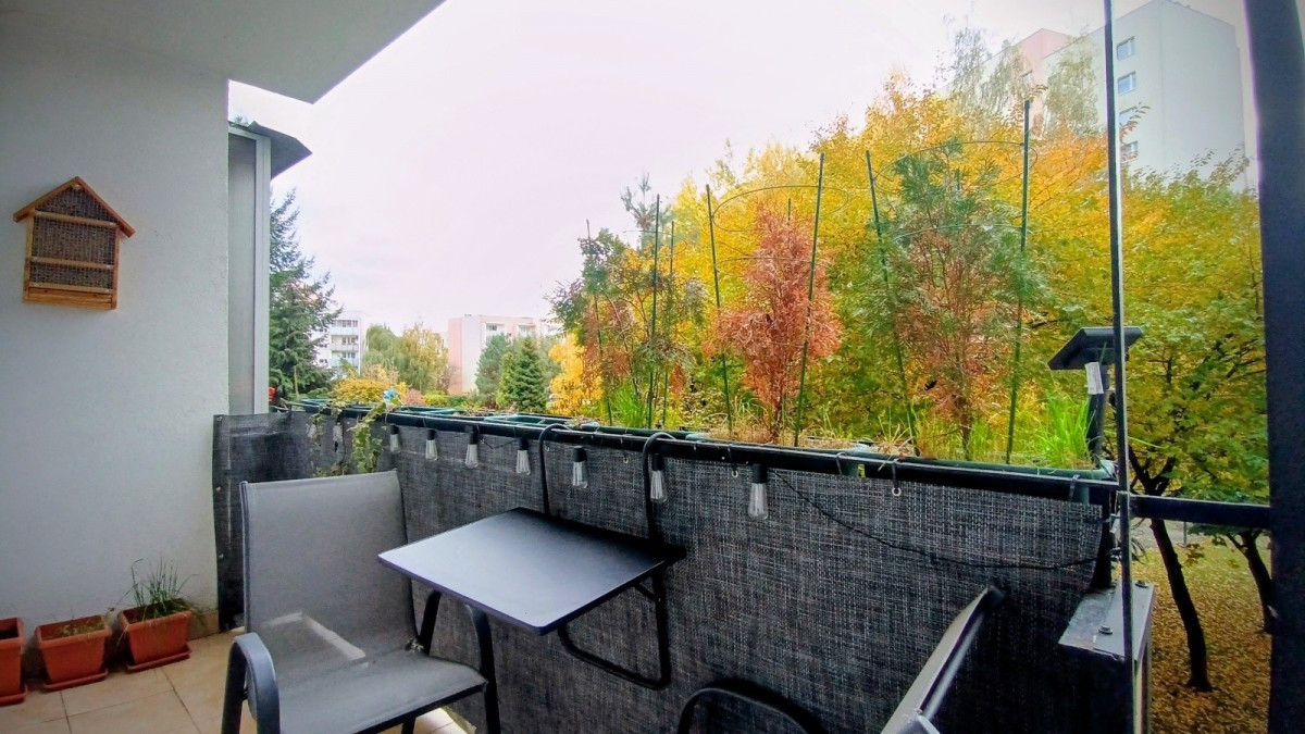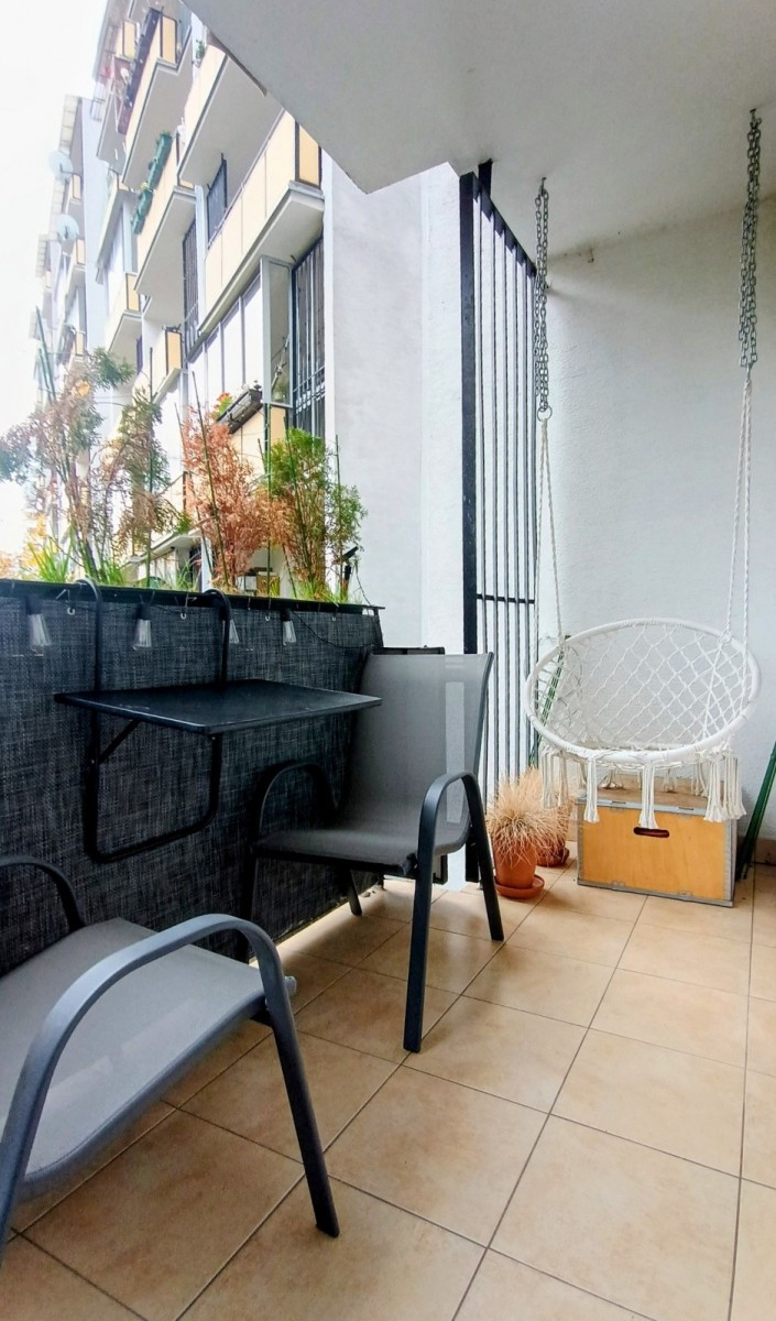 Mieszkanie ciche, widne, z dużym balkonem wychodzącym na zielony skwer.