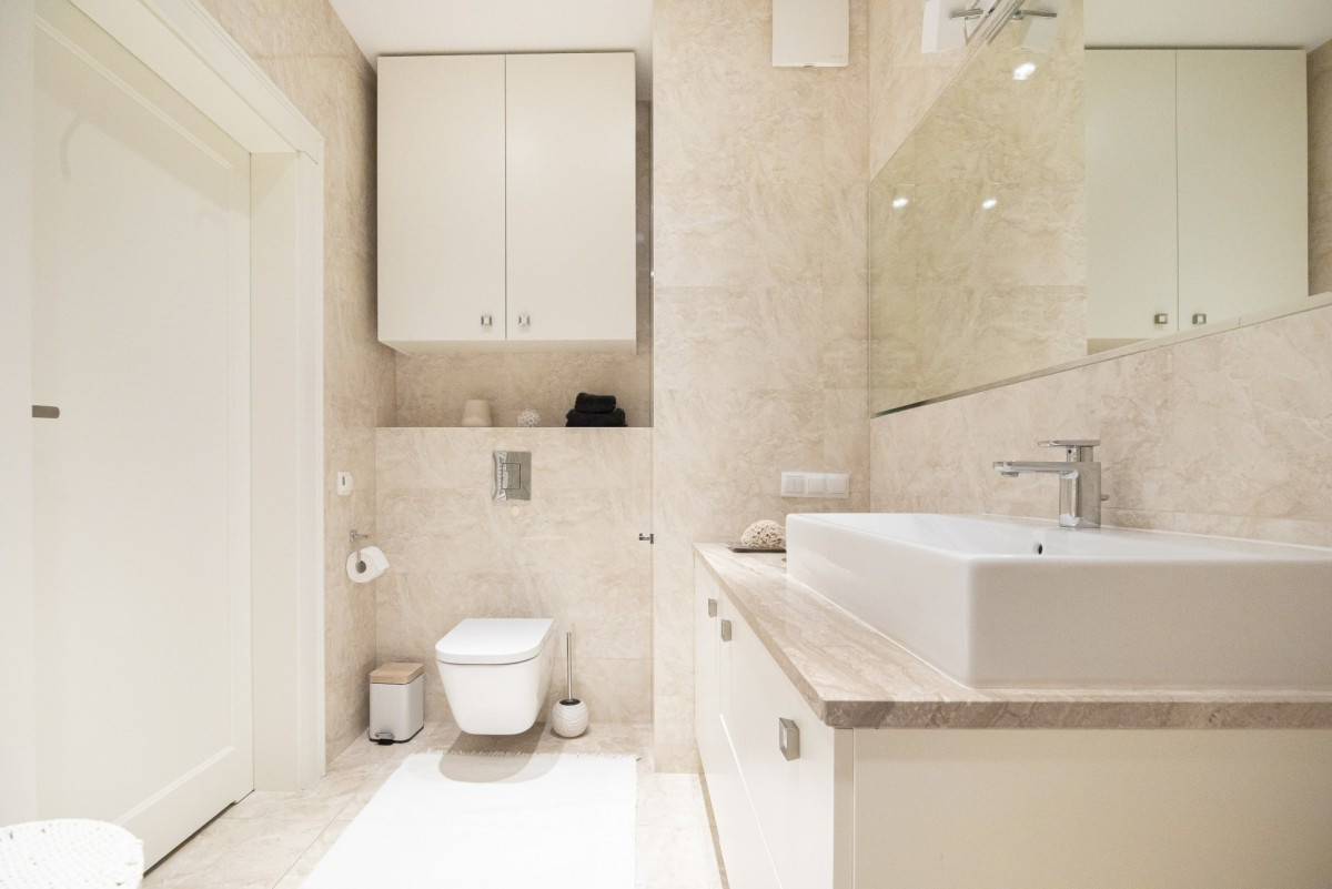 Mieszkanie składa się z obszernego holu wejściowego z zabudowaną szafą, przytulnego pokoju dziennego oraz przestronnej, częściowo otwartej kuchni, która została kompletnie wyposażona. Dodatkowo, mieszkanie obejmuje sypialnię oraz dwie łazienki - jedną z wanną i prysznicem, a drugą mniejszą, z zabudowaną pralką. Z pokoju gościnnego oraz kuchni można wyjść na przestronny balkon, z którego rozciąga się piękny widok na wewnętrzne patio oraz otaczający park. Mieszkanie zapewnia nie tylko komfortowe warunki mieszkalne, ale także pozwala cieszyć się pięknymi widokami, spokojem i prywatnością pomino ze znajduje się w ścisłym centrum Warszawy.